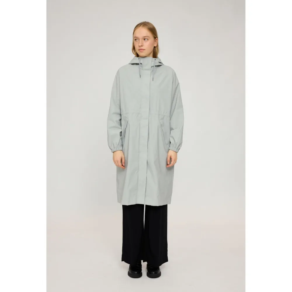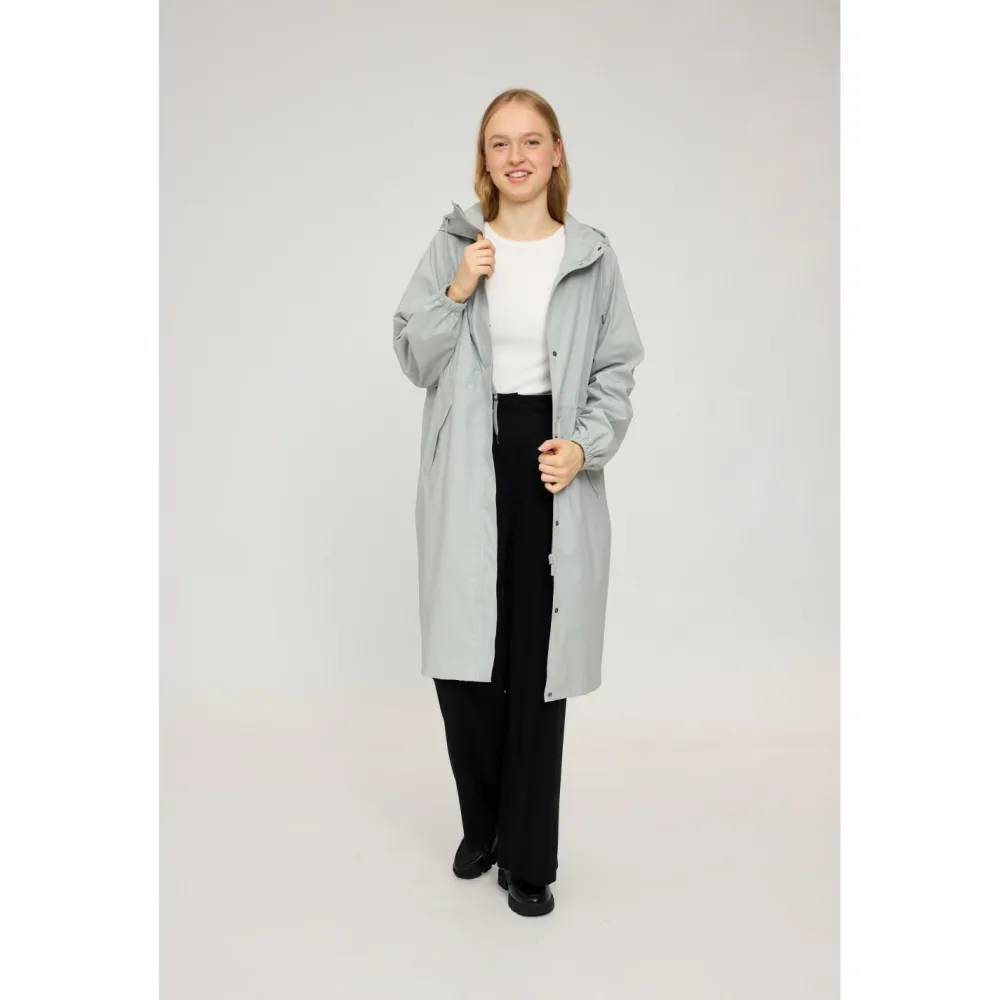 Regenschutz kann so stylisch sein, dass Du ihn nur ungern wieder ablegen magst – gewappnet für die kommende Regenfront bist Du mit dem Women’s Oversized Rain Coat Recycled Fabric Mantel von Mazine!
