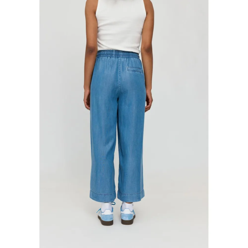 Die Women’s Wide Leg Denim Pants with Belt Hose von Mazine kommt im lässigen Denimlook und besticht durch ihren weiten Schnitt.Produziert aus dem weich fallenden und kühlenden Lyocell, liegst Du mit dieser Hose in der warmen Jahreszeit garantiert richtig. Zwei Seitentaschen und eine Gesäßtasche bieten Platz für Kleinigkeiten und der elastische Hüftbund wird mit einem Kordelzug verschlossen. Passt toll zum sportlichen Sneaker-Look!