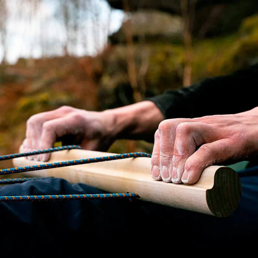 Der Mega Bar von Lattice ist ein tragbares Hangboard, das speziell für Kletternde entwickelt wurde, die auch unterwegs nicht auf ihr Training verzichten wollen. Mit einem Gewicht von nur etwa 450 g und einer Länge von rund 40 cm passt er problemlos in jeden Kletterrucksack – ideal für den Einsatz am Fels, auf Reisen oder im heimischen Wohnzimmer. Trotz seiner kompakten Größe bietet der Mega Bar genug Fläche für beidarmige Hangs.