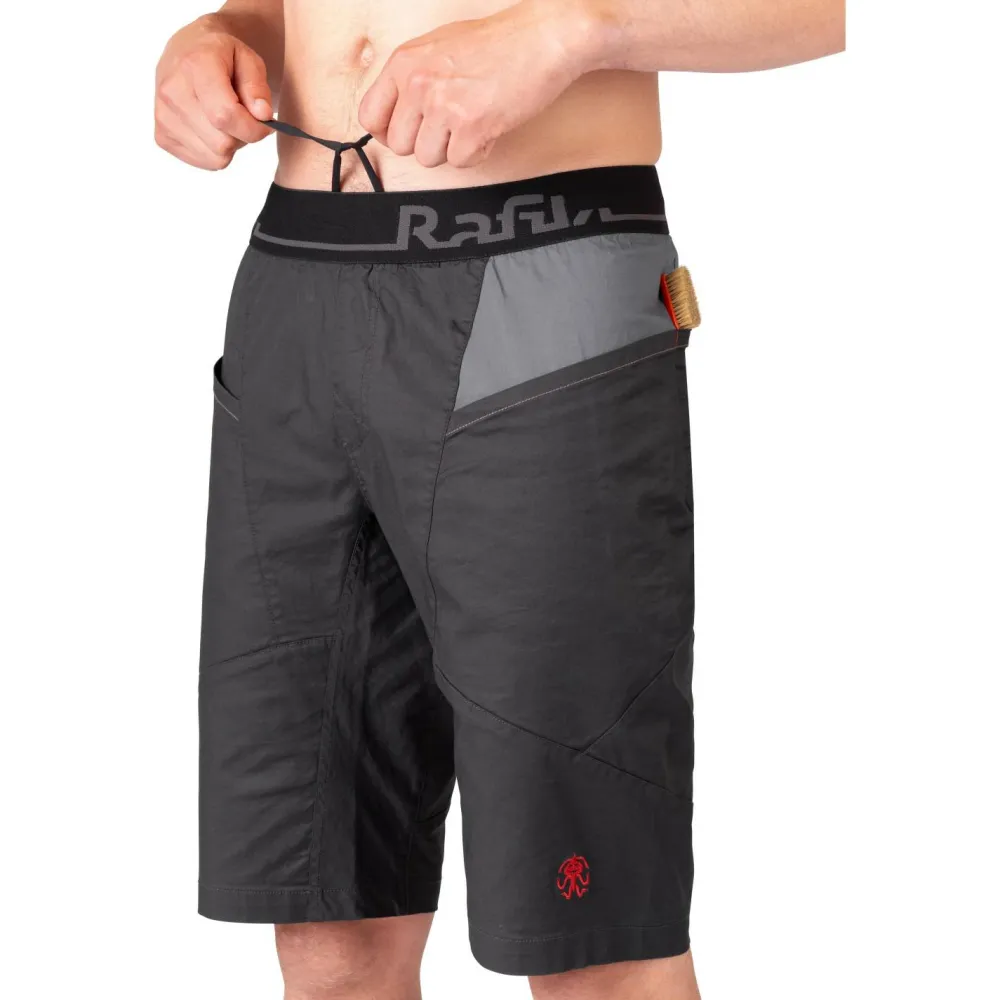 Die Megos Shorts von Rafiki wurde zum Klettern und Bouldern an warmen Tagen entwickelt. Ihr moderner und sportlicher Look kann vielseitig kombiniert werden. Damit ergänzt sie jedes Kletteroutfit optimal. Die beiden Fronttaschen bieten ausreichend Platz, um Kleinigkeiten schnell und einfach zu verstauen und griffbereit zu haben.