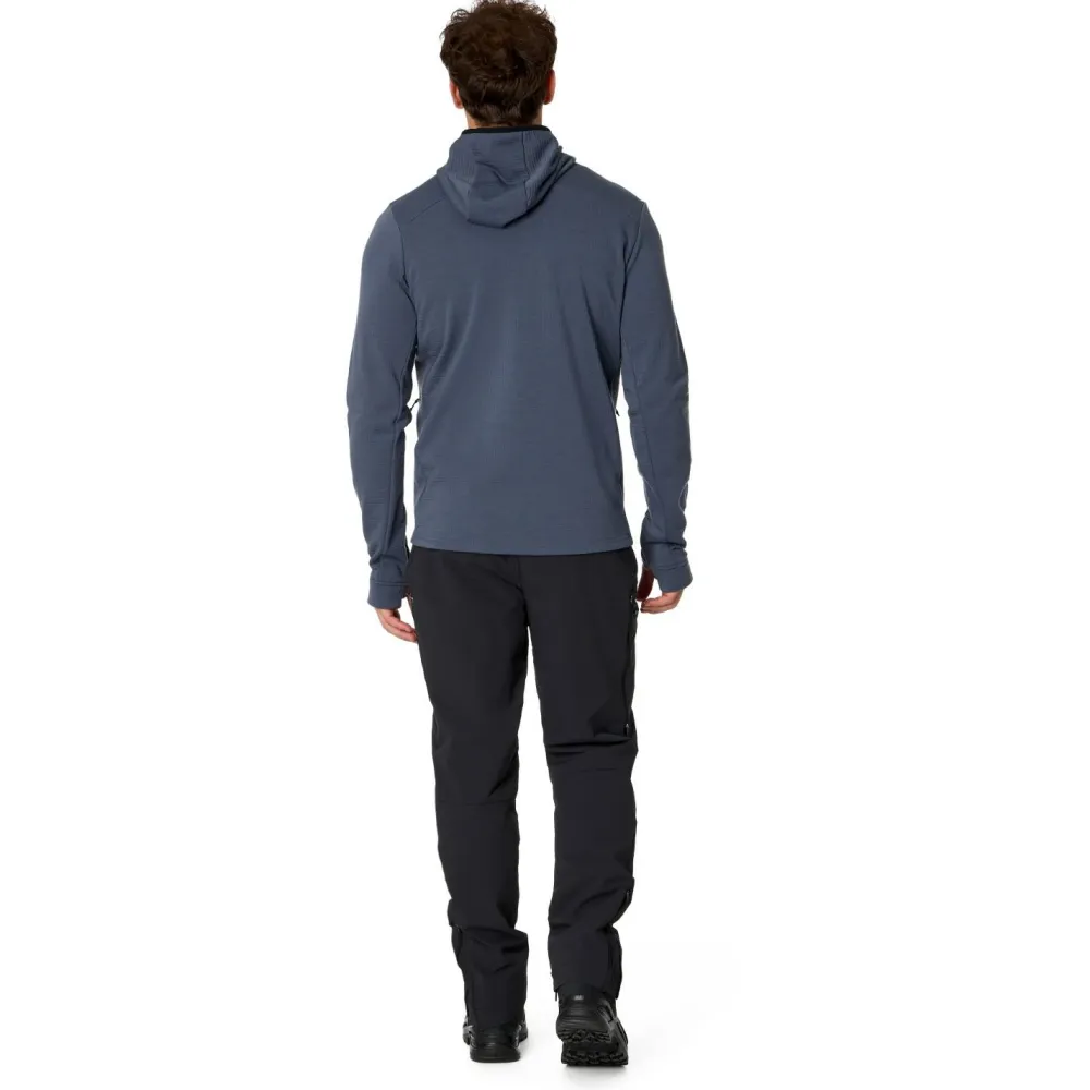 Der Mix aus 50 % Merinowolle und 50 % Polyester verbindet Komfort mit Funktion. Merinowolle liegt weich auf der Haut und wirkt geruchsregulierend – ideal für längere Touren. Polyester sorgt für Strapazierfähigkeit und schnelle Trocknung. Die elastisch eingefasste Kapuze sitzt bequem und schützt Dich vor Wind, während die versetzten Schulternähte Druckstellen unter dem Rucksack vermeiden. Die elastischen Ärmelbündchen mit Daumenschlaufen halten alles dort, wo es hingehört – auch bei aktiven Bewegungen.