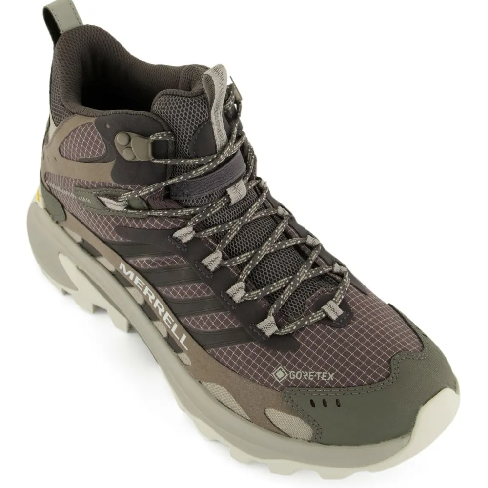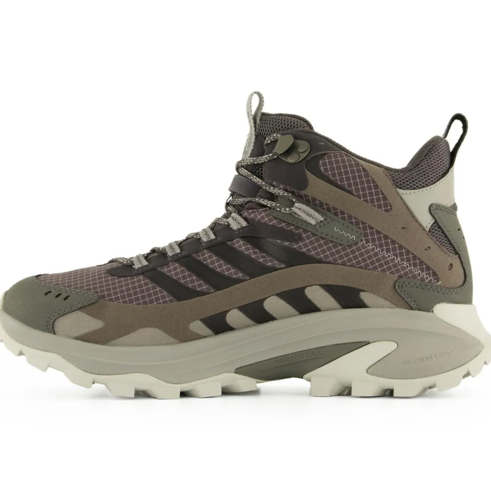 Als Dämpfung kommt eine Kombination aus PU-Fußbett und FloatPro Zwischensohle zum Einsatz. Die wird auch bei den Trailrunning-Modellen von Merrell verwendet und bietet Dir hervorragenden Tragekomfort, auch wenn Du etwas schneller beim Speed Hiking unterwegs bist. Dort kann auch die Vibram TC5+ Außensohle glänzen. Durch das aggressive Profil findet sie auf den verschiedensten Untergründen sicheren Halt, egal ob tiefer Waldweg oder ausgesetzter Wanderpfad. Abgerundet wird das Design der Moab Speed 2 Mid GTX von den Verstärkungen an Ferse und Fußspitze. Ein wirklich starker Begleiter für Wanderungen jeglicher Art!