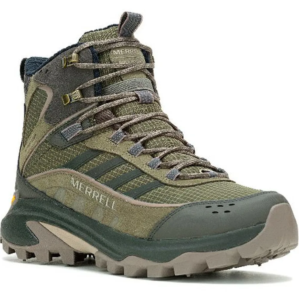 Halten dicht und warm, die Winterschuhe Moab Speed 2 Thermo Mid WP von Merrell! Sie kommen mit einer wasserdichten Membran daher, die für zuverlässigen Wetterschutz sorgt. Zudem punkten sie mit Atmungsaktivität. Verstärkungen an Zehen und Fersen, sowie ein hoher Schaft sorgen für Stabilität und Schutz.