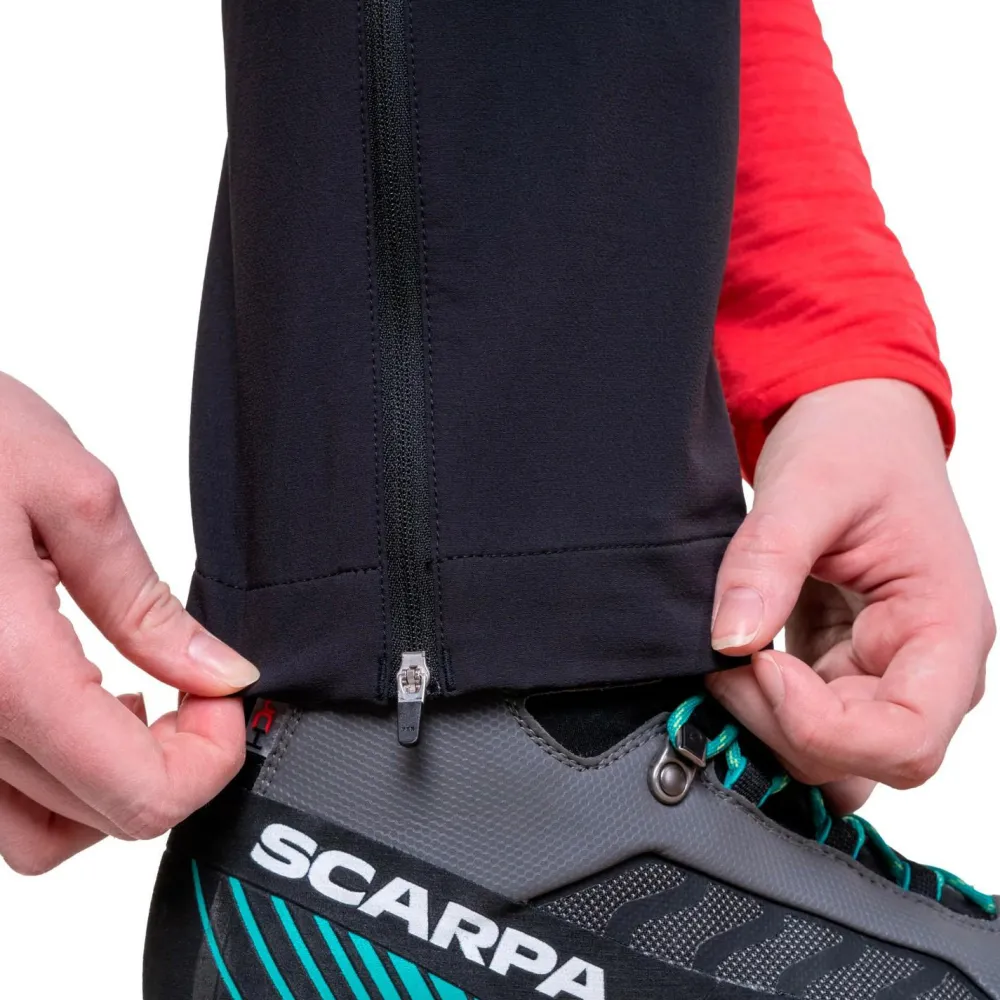 Die vorgeformten Knie und die Reißverschlüsse an den Beinenden der Women’s Chamois Pant bieten zusätzliche Bewegungsfreiheit und Flexibilität. Diese Extras sind besonders nützlich bei Aktivitäten, die eine hohe Beweglichkeit erfordern. Das Softshell- und Kunstfasermaterial sorgt für Strapazierfähigkeit und Atmungsaktivität, was die Hose ideal für Outdoor-Aktivitäten macht.