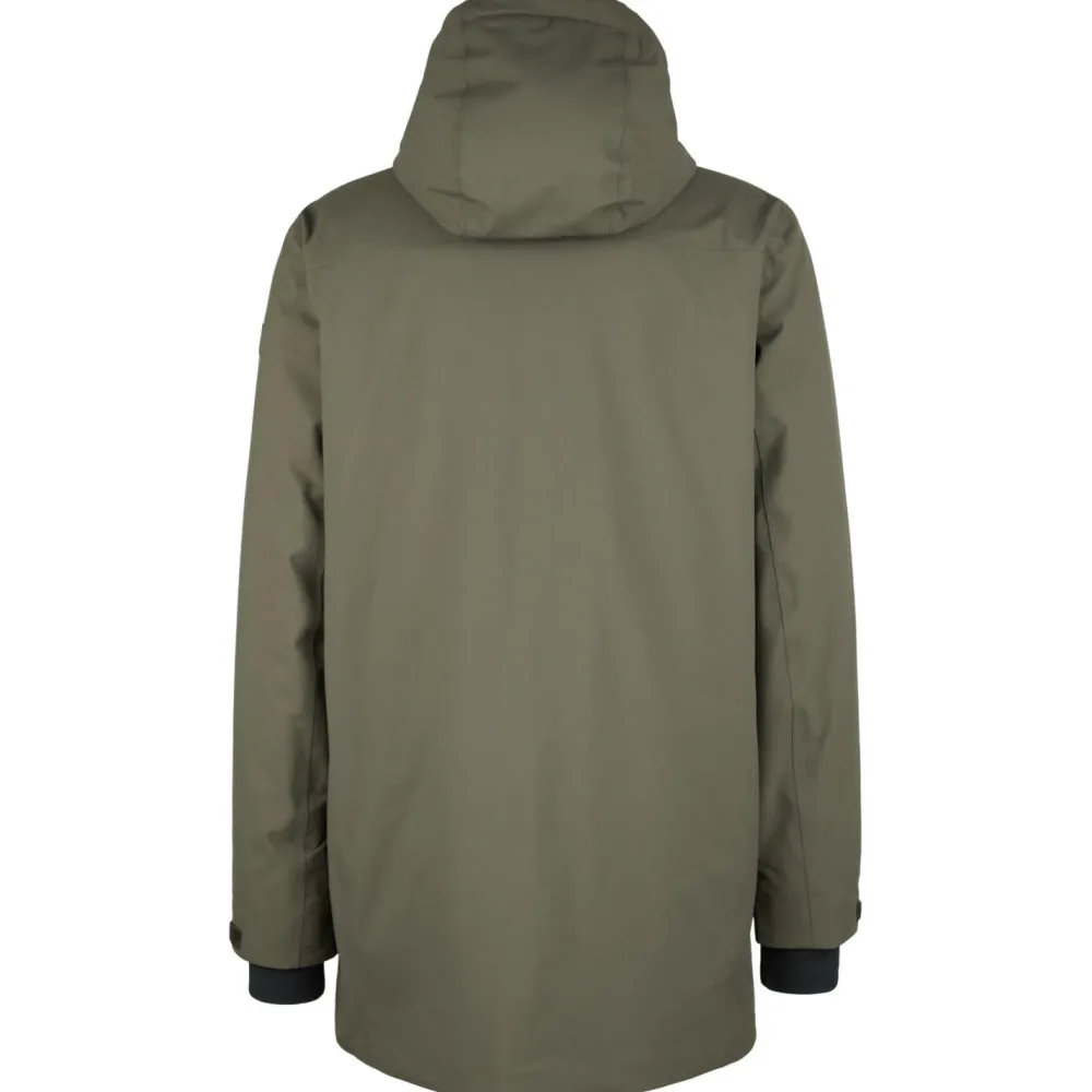 Die Füllung aus 60 % Polyester und 40 % Wolle bringt das Beste aus zwei Welten zusammen: Die Kunstfaser sorgt für Strapazierfähigkeit und schnelles Trocknen, während die Wolle für natürliche Wärme und ein angenehmes Körperklima steht. Diese Kombination macht den Parka besonders alltagstauglich – Du bleibst warm, ohne ins Schwitzen zu kommen. Gleichzeitig bleibt der Parka leicht und trägt sich angenehm, auch bei längeren Wegen oder wechselhaftem Wetter. Zusätzlich schützt Dich das 3-Lagen-Material mit 15.000 mm Wassersäule und 15.000 g/m²/24h Atmungsaktivität zuverlässig vor Nässe und sorgt für ein angenehmes Körperklima.