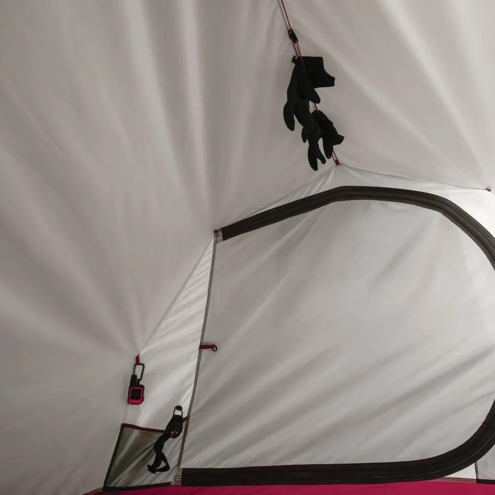 Außerdem verfügt das Zelt über ein geräumiges Innenzelt, das mit einer Länge von 2,34 m, einer Schlafbereich-Breit von 1,65 m und einer Höhe von 1,09 m jede Menge Raum für einen komfortablen Schlaf und einen gemütlichen Aufenthalt bietet. Für Ausrüstungsgegenstände ist ebenfalls Platz im Zelt. Zudem ist eine Wäscheleine vorhanden, auf der Du nasse Kleidungsstücke trocknen kannst. Die Belüftungsschächte erreichst Du einfach von innen. Der Doppel-Eingang aus Netz und Stoff ist groß und breit. Er ermöglicht ein leichtes Ein- und Aussteigen.