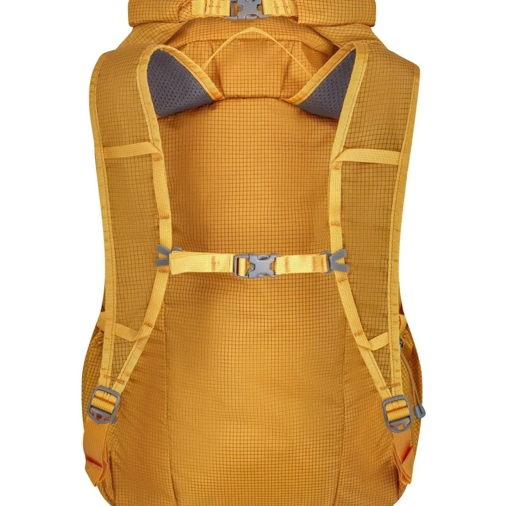 Mit seinen ergonomischen Schultergurten, Brustgurt und belüftetem Tragesystem sitzt er bequem, selbst auf langen Strecken. Trinkflaschen verstaust Du in den flexiblen Seitentaschen, während Befestigungspunkte für Ausrüstung bereitstehen.