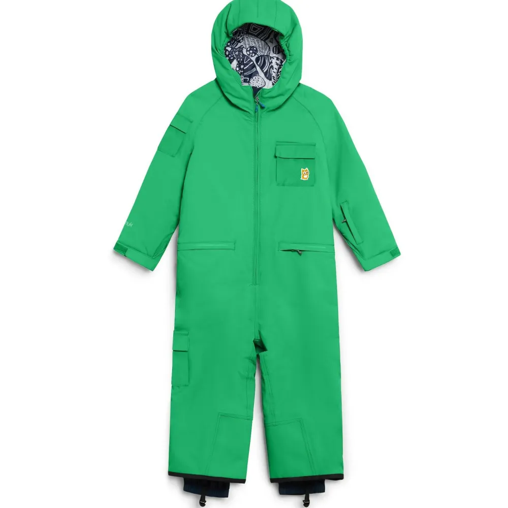 Versteckte integrierte Hosenträger bieten einen perfekten Sitz und Halt im Restaurant. Sollten die Kids mal dringend auf Toilette, verfügt der Overall über einen praktischen Reißverschluss um die Hüfte, damit es etwas schneller und unkomplizierter geht. Details wie eine Abfalltasche zum Ausstülpen und Auswaschen, eine Tasche mit einer Schnuller- und Schlüsselhalterung sowie reflektierende Elemente sorgen für einen unbeschwerten und schönen Tag im Schnee, beim Skifahren, Rodeln oder Toben.