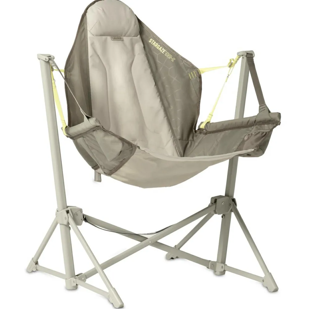 Der Stargaze EVO-X Campingstuhl von Nemo setzt neue Maßstäbe in Sachen Komfort beim Campen. Ob es Angeln geht, auf den Campingplatz in den Bergen, oder zum Feierabend-Grillplatz, der Stargaze EVO-X bringt Sofa-Komfort in die Natur und das bei minimalem Packmaß. Für den Transport kann der Stuhl nämlich auf ein Minimum seiner Größe reduziert werden und lässt sich komfortabel in einem mitgelieferten Beutel transportieren.