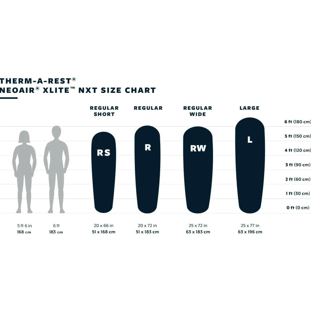 Die NeoAir XLite NXT MAX ist eine rechteckige und leichte Isomatte für Outdoor-Abenteuer in allen Jahreszeiten. Ihre Konstruktionsweise kombiniert die Triangular Core Matrix mit der Wärme ausstrahlenden ThermaCapture Technologie und macht sie jetzt um 83% geräuschärmer als das Vorgängermodell. Dank einer Dicke von 7,6 cm und horizontalen Kammern sowie der größeren Schlaffläche einer rechteckigen Form ist die XLite NXT MAX äußerst bequem und bietet eine gute Stützfunktion bei geringem Gewicht und kleiner Packgröße. Die XLite NXT MAX wiegt nur 540 g (reguläre Größe) und hat einen für vier Jahreszeiten geeigneten R-Wert von 4,5.