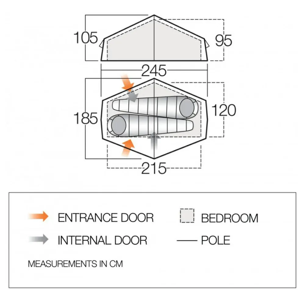 Außenzelt und Boden verfügen über getapte Nähte, sodass nirgendwo Wasser hereinkommen kann. Die O-förmigen Türen des Innenzeltes bestehen zum Teil aus Mesh-Stoff und ermöglichen dadurch eine angenehme Belüftung im Zeltinneren. Gleichzeitig werden Insekten effektiv draußen gehalten. Die Eingänge ins Innenzelt lassen sich bequem mit einer Hand öffnen. Praktisch sind außerdem die Taschen im Zeltinneren, in denen sich die wichtigsten Kleinigkeiten bequem verstauen lassen. Der Fastpack-Packsack verfügt über eine Oversize-Öffnung sowie Kompressionsriemen. Dadurch lässt sich das Zelt einfach verpacken und dann sehr klein komprimieren. Los geht’s zum nächsten Outdoor-Abenteuer – mit dem Vango Nevis 200 2-Personenzelt.
