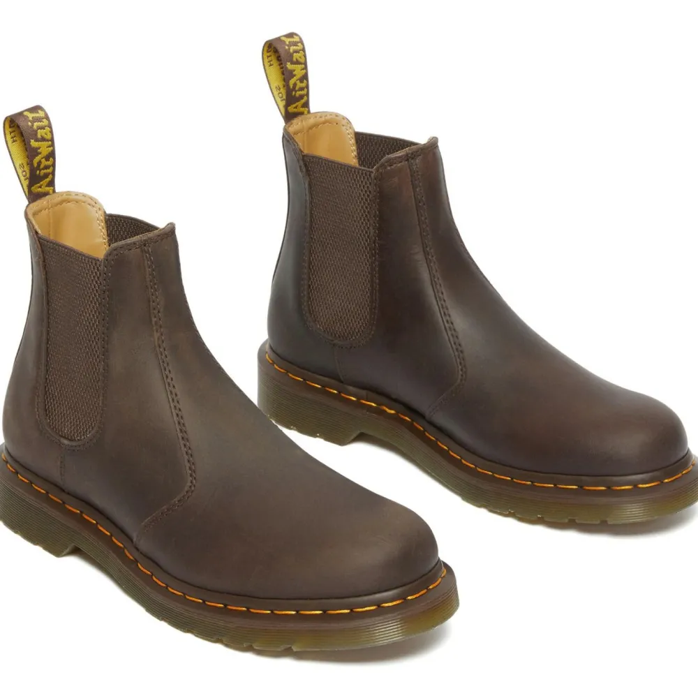 Die Chelsea Boots 2976 Crazy Horse von Dr. Martens sind äußerst strapazierfähige, hochwertig verarbeitete Schuhe, die sich ideal als Alltagsbegleiter für das ganze Jahr eignen. Die prominente AirWave-Anziehschlaufen, die markante, gelbe Naht und die robuste Sohle verleihen ihnen den unverwechselbaren Dr.-Martens-Style. Das charakteristische Obermaterial mit Used-Look besteht aus naturbelassenem Crazy-Horse-Leder und ist mit der Sohle vernäht. Dadurch sind die Schuhe äußerst langlebig und werden mit der Zeit nur noch schöner. Kurzum: zeitlose Klassiker, die Dich lange begleiten werden.