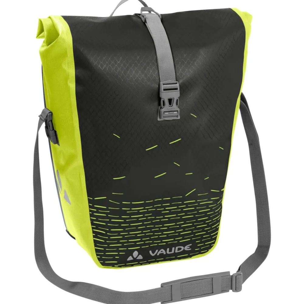 Am Hinterrad bietet die Aqua Back Print Single Gepäckträgertasche von Vaude nicht nur ihr hübsches Design, sondern auch 24 Liter zusätzlichen Stauraum. Mit dem zuverlässigen und leicht einstellbaren QMR 2.0 System wird die Packtasche am Gepäckträger fixiert und lässt sich dort ebenso zügig wieder entfernen. Ein praktischer abnehmbarer Schultergurt erleichtert das Tragen. Mit ihrem PVC-freien Planenmaterial und dem wasserdichten Wickelverschluss ist die Vaude Radtasche bestens vor Nässe, Staub und Schmutz geschützt. Eine Eco Finish Behandlung an der Oberfläche garantiert zudem einen effektiven Abperleffekt. Die Aqua Back Print Single Gepäckträgertasche wird nachhaltig in Deutschland hergestellt und begeistert durch ihre robuste Haltbarkeit.