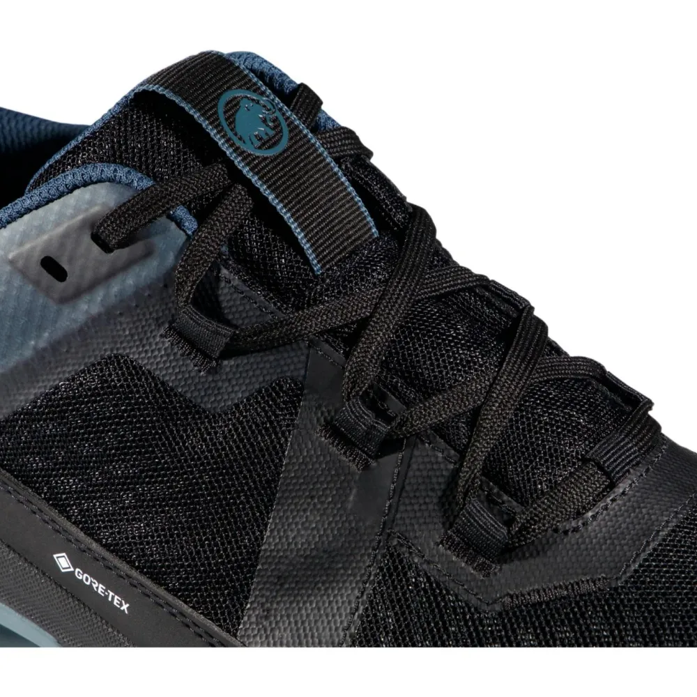 Dieser leichte Wanderschuh verbindet Outdoor-Performance mit modernem Look. Die Mammut Swiss Design-Außensohle bietet zuverlässigen Grip auf dem Trail und in der Stadt. Das atmungsaktive Vent-Mesh-Obermaterial hält Deine Füße auch an warmen Tagen angenehm kühl, während die GORE-TEX Stretch-Membran für Bewegungsfreiheit sorgt und Nässe zuverlässig abhält.