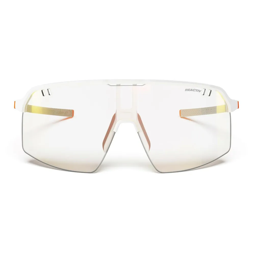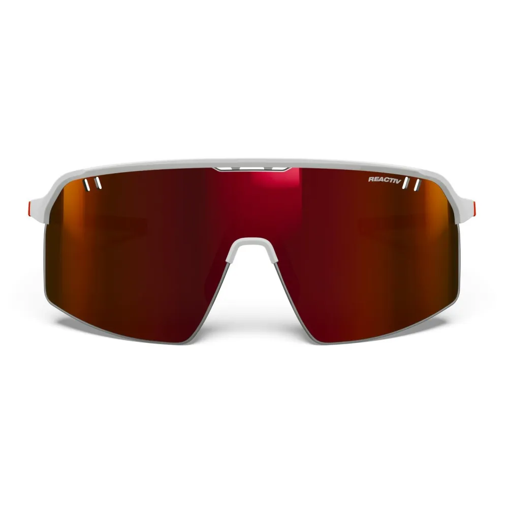 Wenns sportlich, schick und funktionell sein soll, dann kommt die Intensity Reactiv HC S0-3 (VLT 15-87%) von Julbo ins Spiel. Diese Fahrradbrille ist federleicht und bietet Dir einen optimalen Schutz Deiner Augen. Zusätzlich ist das Gestell äußerst filigran und ermöglicht einen angenehmen Sitz und eine gute Belüftung der Scheibe. Diese ist übrigens selbsttönend und wirkt bei den unterschiedlichsten Lichtverhältnissen kontraststeigernd.