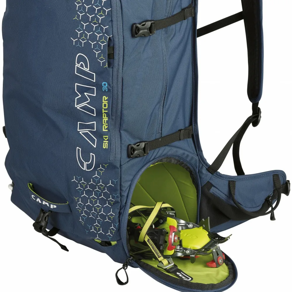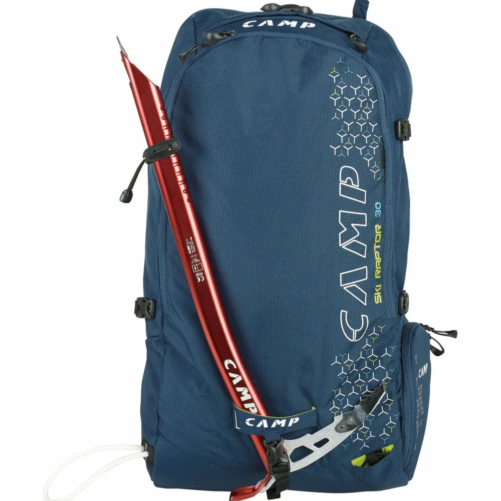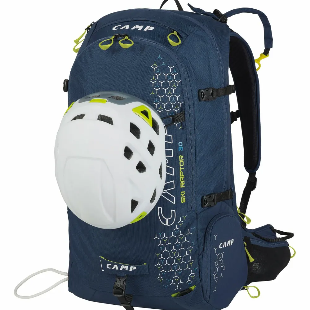Mit dem Ski Raptor 30 hat Camp einen großen Skitourenrucksack im Programm, welcher sich ideal für Skitouren im Gelände und zum Freeriden eignet. Der Rucksack verfügt über ein atmungsaktives Rückteil aus leichtem Mesh-Gewebe, welches Feuchtigkeit rasch vom Rücken nach außen hin ableitet. Das robuste Außenmaterial schützt am Berg gegen Beschädigungen. Die Ski lassen sich beim Aufstieg sowohl seitlich als auch diagonal anbringen.