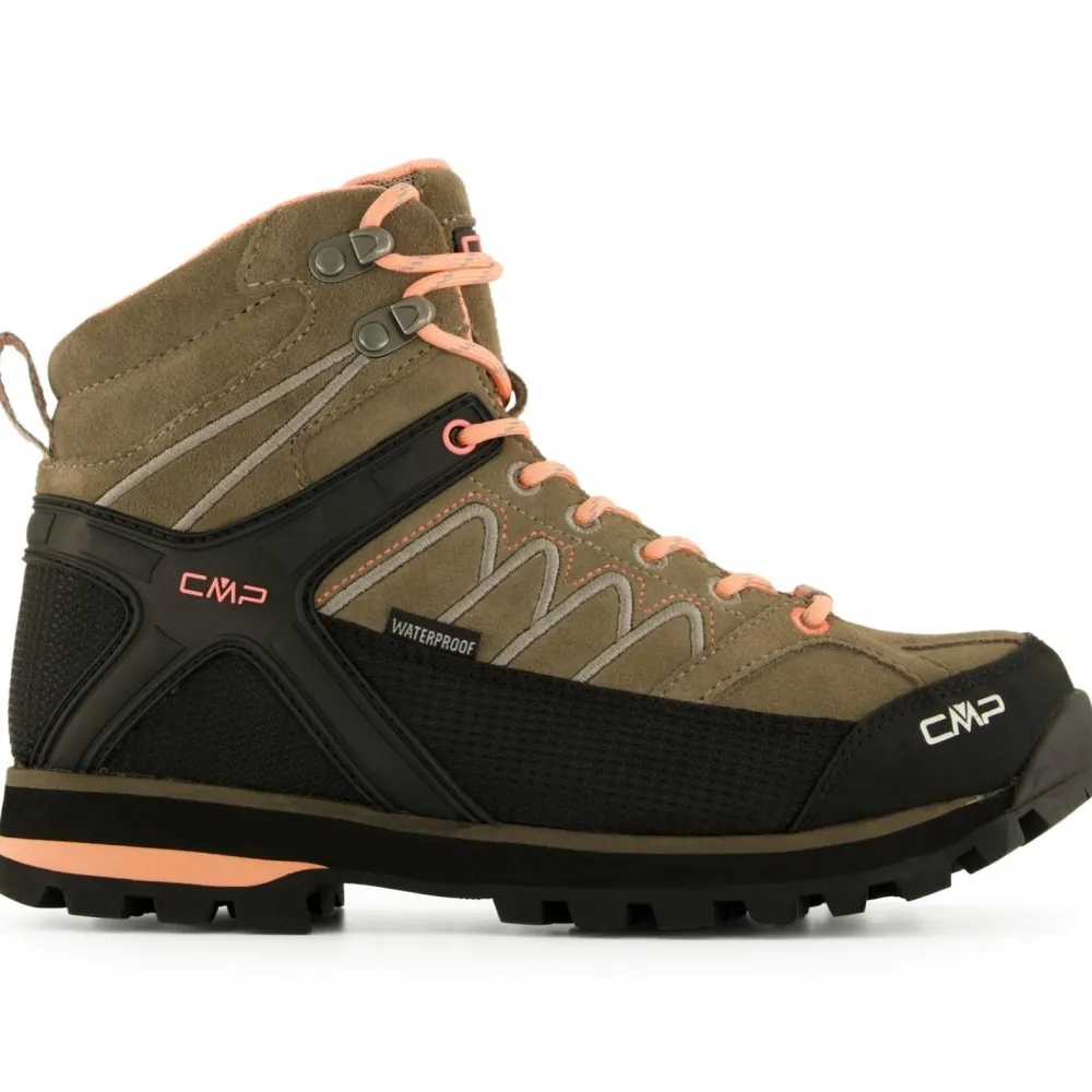 Die Women’s Moon Mid Trekking Shoes Waterproof Wanderschuhe sind rundum verstärkt, so dass Steine, Geröll und Wurzeln den Schuhen nichts anhaben kann. Zusätzlich verstärkt CMP die Wanderschuhe im Zehenbereich und an der Ferse. Eine Kombination aus Veloursleder und Polyester macht die wasserdichten Schuhe angenehm weich und strapazierfähig zugleich. Dämpfende EVA Zwischensohle und Ortholite Brandsohle machen das Tragegefühl beim Wandern perfekt.