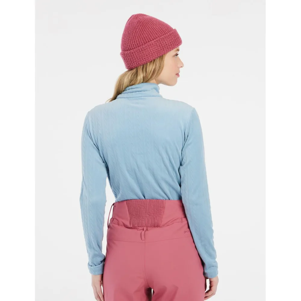 Mit dem Women’s PRTGail 1/4 Zip Active Top von Protest verleihst Du Deinem Skiurlaub eine edle Note. Das strukturierte Material mit Kabelstrickmuster sorgt für einen zeitlosen Look, der sich sowohl auf der Piste als auch beim Après-Ski sehen lassen kann. Das elegante Design lässt sich vielseitig kombinieren und macht jedes Deiner Wintersport-Outfits komplett.