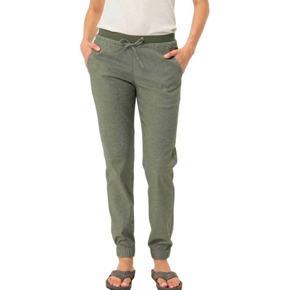 Der Materialmix der Freizeithose Women’s Redmont Pants von Vaude bietet einen weichen Tragekomfort mit optimalem Feuchtigkeitsmanagement. Zudem hast Du eine gute Bewegungsfreiheit. Mit dem elastischen Bund und den enganliegenden Beinenden wird die Passform optimiert. Die pflegeleichte Hose ist der ideale Partner für Reisen, den Alltag und die Stadt!