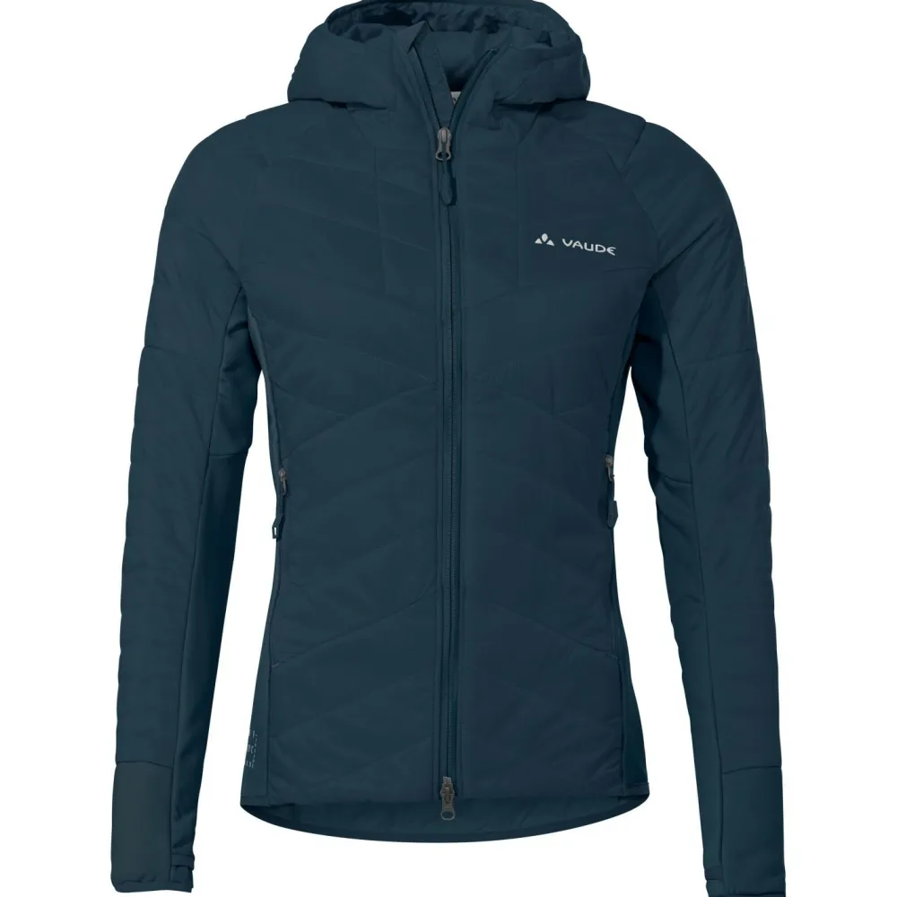 Die Women´s Sesvenna Jacket IV von Vaude ist eine sportliche Isolationsjacke für Skitouren und andere anspruchsvolle Aktionen in den Bergen. Die wattierte Jacke wärmt ideal, ist aber trotzdem stark atmungsaktiv. So wird es im Aufstieg nicht zu warm und man ist auf der Abfahrt gut geschützt. Statt mit Daune ist diese Jacke mit PrimaLoft gefüttert, einer daunenähnlichen Kunstfasertechnologie, die durch ihre hervorragende Wärmisolationsleistung punktet.