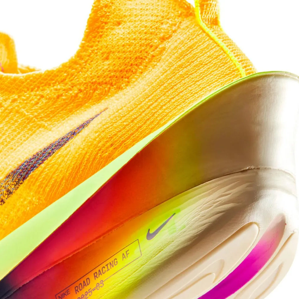 Die Kombination aus ZoomX-Schaumstoff, zwei Air-Zoom-Elementen im Vorfuß und einer durchgehenden Carbonfaserplatte sorgt für außergewöhnliche Energierückgabe, effizienten Vortrieb und ein dauerhaft frisches Laufgefühl von Start bis Ziel. Der ultraleichte Schaum dämpft jeden Schritt, ohne Tempo zu verlieren. Die integrierte Carbonplatte eignet sich für ein geschmeidiges Abrollen und dynamische Beschleunigung, während das neue Atomknit-Obermaterial Halt, Atmungsaktivität und multidirektionale Unterstützung bietet.Das Design ist kompromisslos auf Performance ausgelegt. Runningschuhe, die gemacht sind, um persönliche Bestzeiten zu schlagen – die Air Zoom Alphafly Next% 3 von Nike.