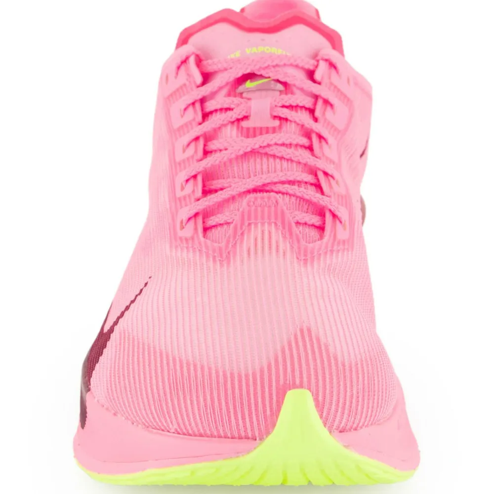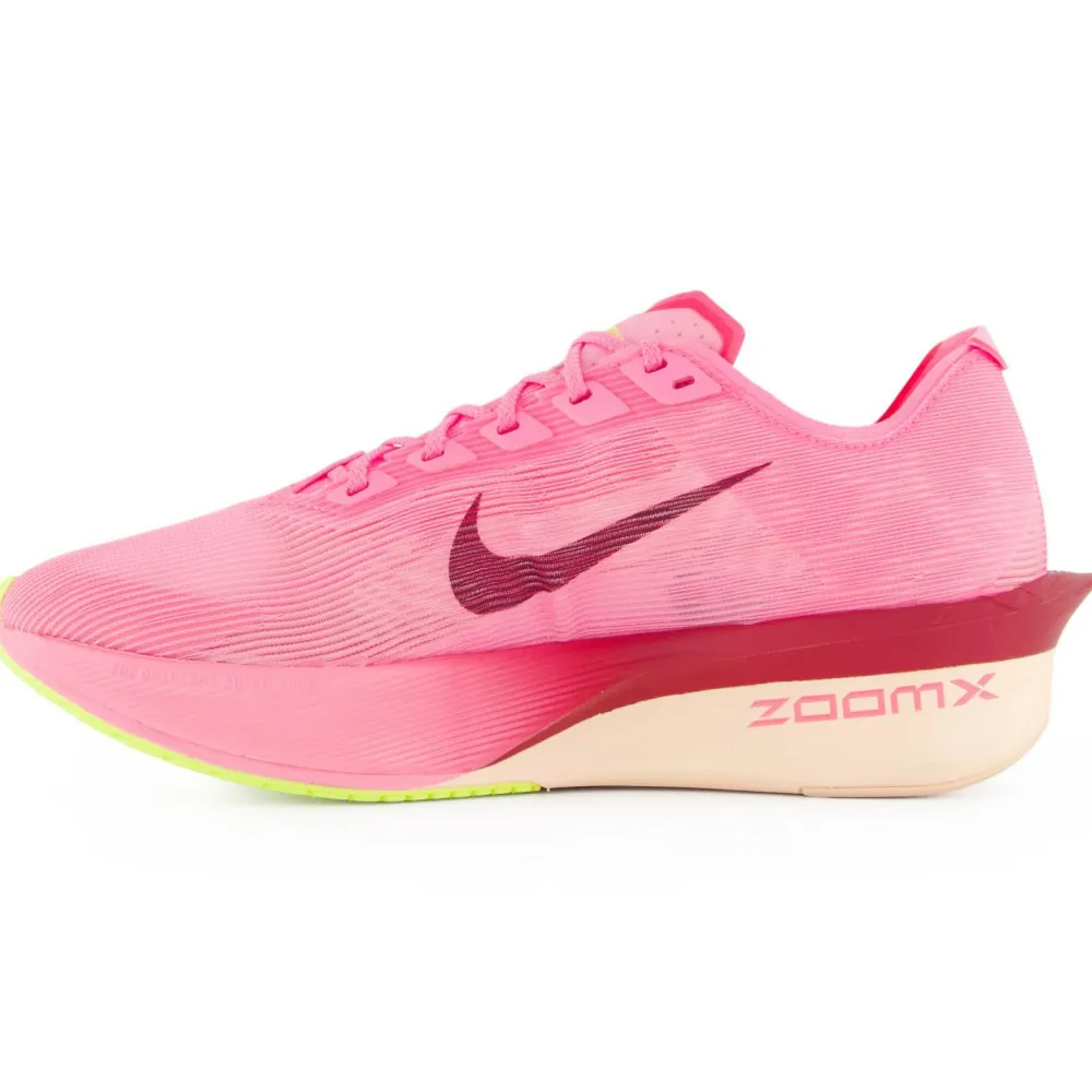 Die Women’s ZoomX Vaporfly Next% 4 Runningschuhe wurden von Nike speziell für den Einsatz im Wettkampf und beim Marathon entwickelt. Daher begeistert er vor allem erfahrene Läuferinnen, die ihre Leistung verbessern und ihre Grenzen austesten wollen. Nike kombiniert ein leichtes Obermaterial aus Mesh-Gewebe mit einer durchgehenden Carbonfaser Flyplate und einer griffigen Außensohle mit neu gestaltetem Waffelprofil. Für angenehme Dämpfung und optimale Energieeffizienz sorgt der leistungsfähige ZoomX Schaumstoff.