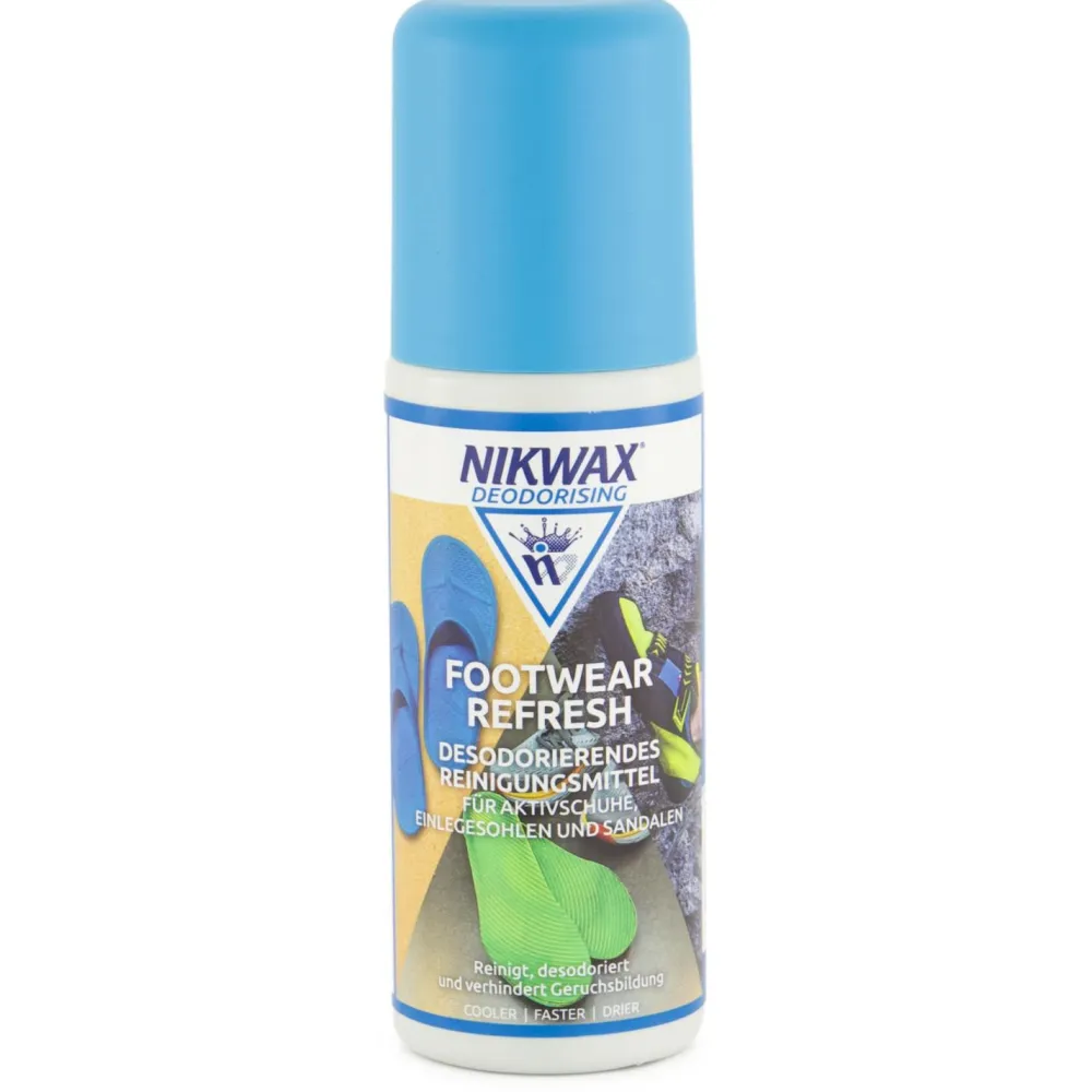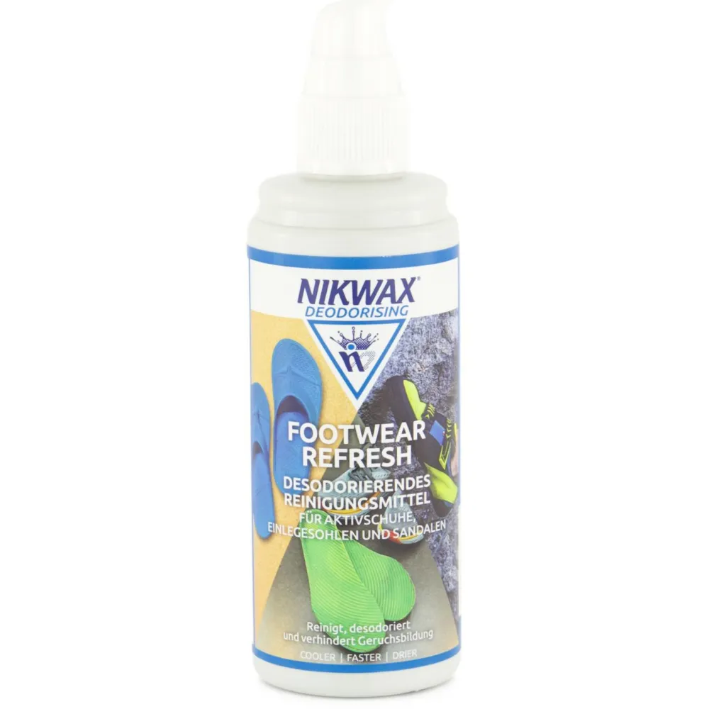 Das Nikwax Footwear Refresh ist ein effektives und schonendes Reinigungsmittel für Sandalen, Kletterschuhe, nicht wasserdichte Sportschuhe sowie für Fußbetten und Einlagen. Es reinigt gründlich und wirkt sowohl geruchshemmend als auch desodorierend. Die Flasche besteht vollständig aus Recyclingplastik.