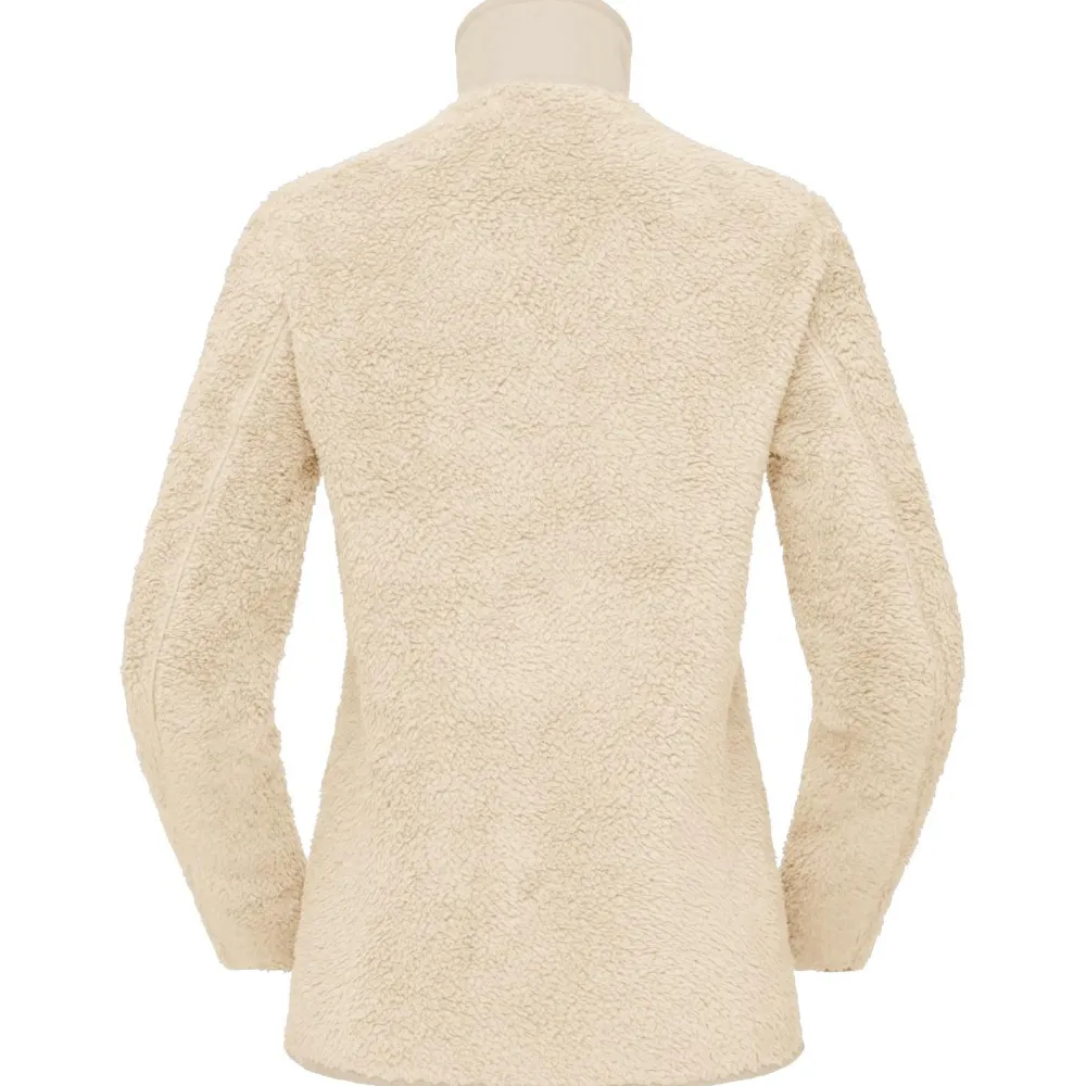 Das kuschelige Flor-Fleece sorgt dafür, dass Wärme am Körper gehalten wird und Feuchtigkeit trotzdem nach außen entweichen kann. So eignet sich die Jacke als Midlayer oder als äußere Bekleidungsschicht bei trockenen Bedingungen.
