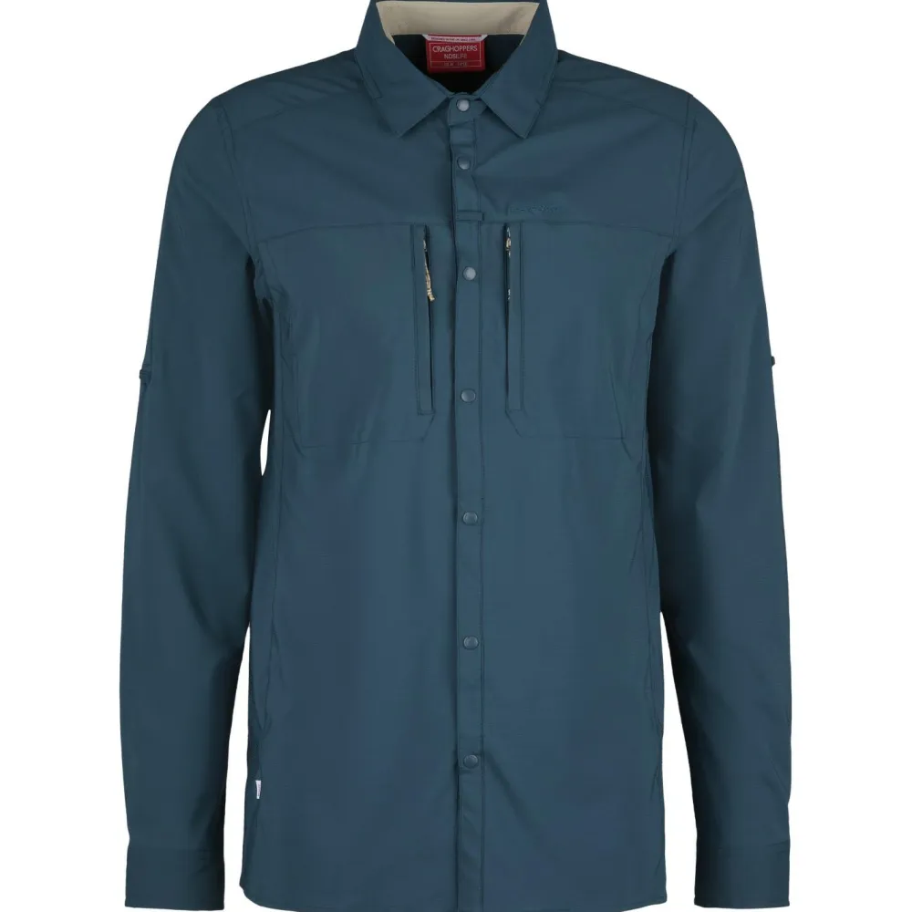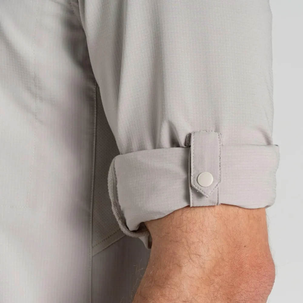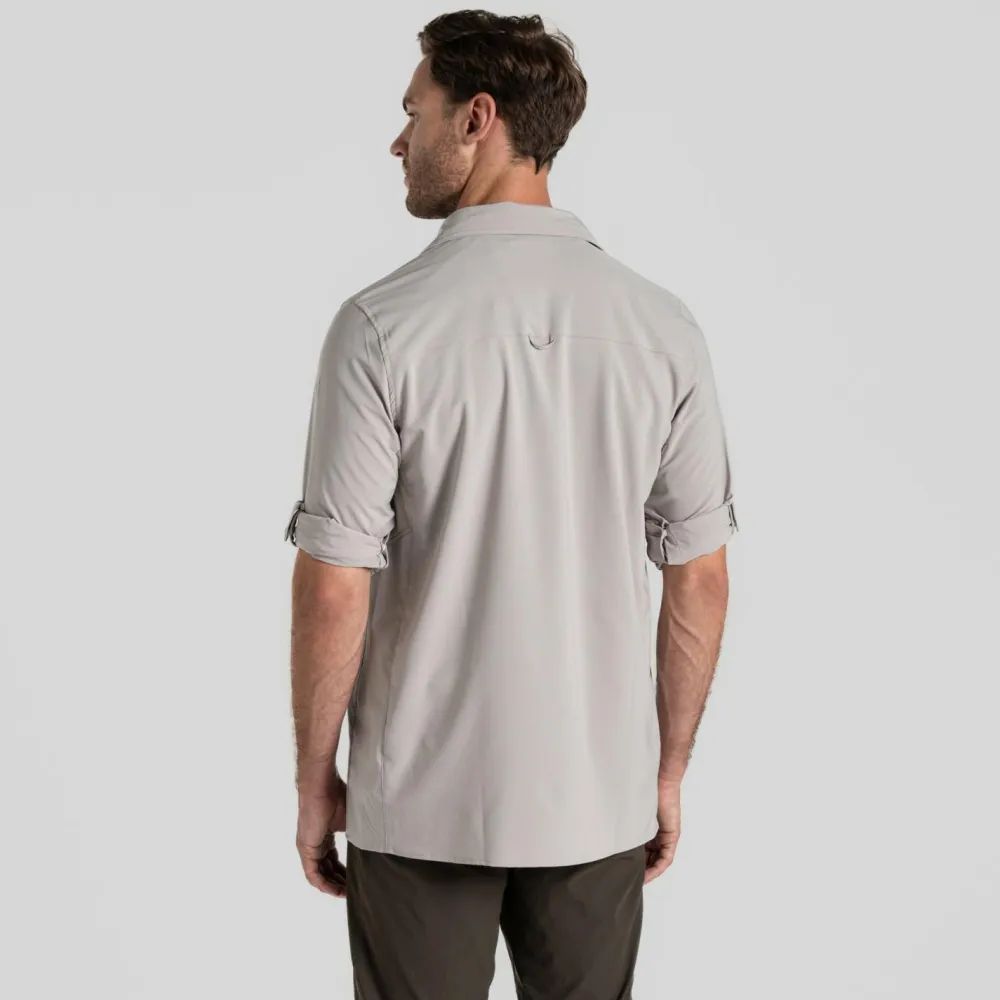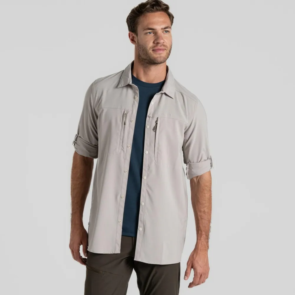 Lange Ärmel, bequemer Schnitt, das ist das Nosilife Pro Langarm Hemd V von Craghoppers. Dieses Hemd begleitet Dich vor allem bei der aktiven Freizeitgestaltung, kann aber beispielsweise auch beim Wandern oder auf Reisen punkten. Das Material ist hierzu atmungsaktiv und flexibel. Zusätzlich wurde es aber auch mit NosiLife behandelt und sorgt somit dafür, dass Dir Stechmücken und Zecken nicht zu nahe kommen. Zwei praktische Taschen mit Reißverschluss bieten außerdem Platz für diverse Kleinteile.