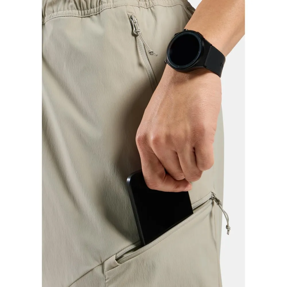 Die Essential Cargo Pants Regular von Odlo eignet sich für Trekkingtouren in der Natur an warmen Tagen. Sie ist atmungsaktiv, schnelltrocknend und stretchy. Damit bietet sie höchsten Bewegungsfreiraum für aktive Tage in der Natur. Der elastische Hüftbund kann dank des Kordelzugs individuell angepasst werden. Damit bietet die Trekkingpants individuellen Tragekomfort. Die Seitentaschen mit Reißverschluss eignen sich dafür, alles Mögliche in ihnen zu verstauen. Zwei weitere Beintaschen mit Reißverschluss bieten zusätzlichen Stauraum. Damit kannst du bei aktiven Trekkingtouren alles Wichtige direkt am Körper verstauen und hast jederzeit Zugriff darauf. Der moderne und sportliche Look der Trekkingpants kann vielseitig kombiniert werden. Damit ist sie ein echter Allrounder.