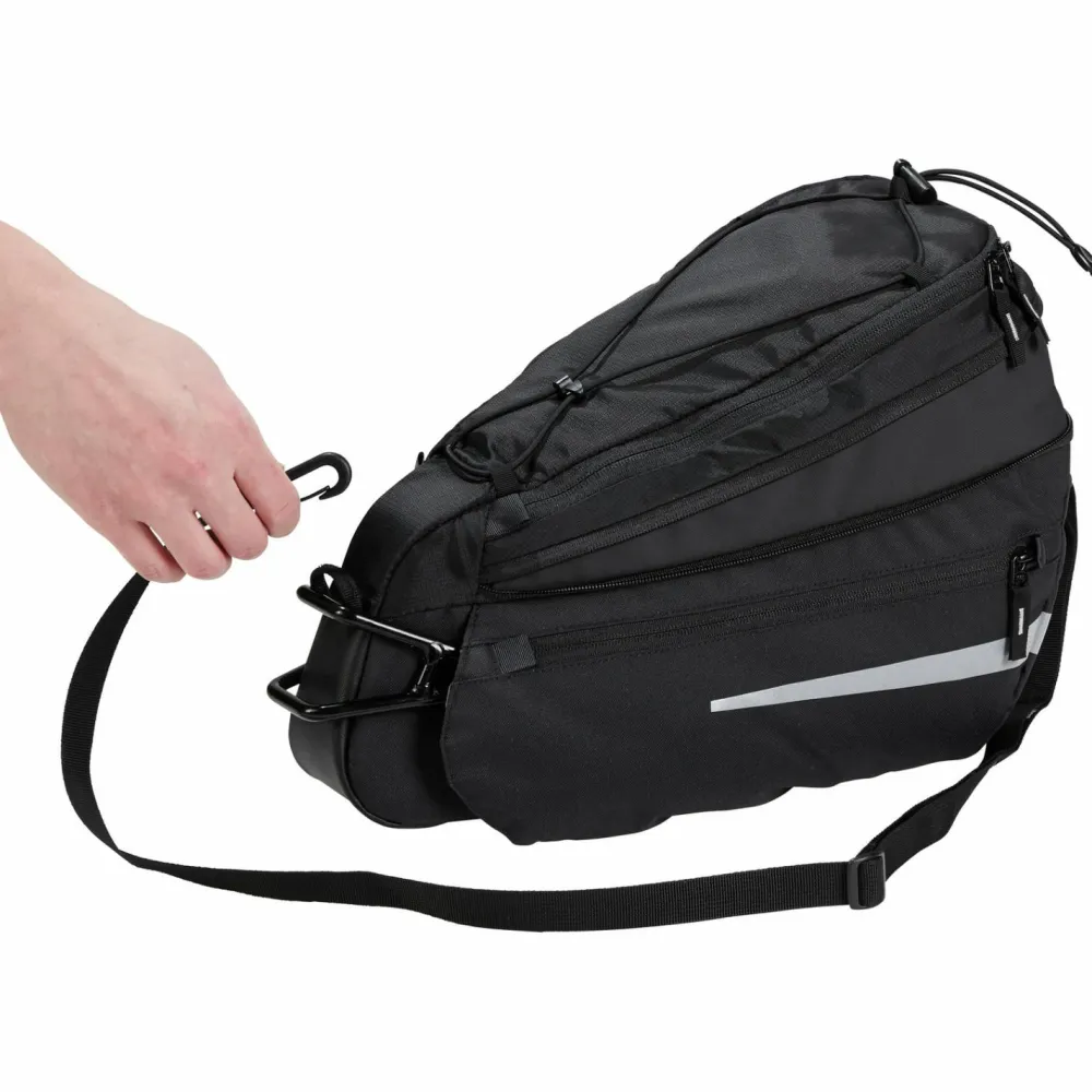 Perfekt für actionreiche und schnelle Touren: die Off Road Bag M von Vaude hält richtig was aus und packt alles ein, was auf dem Sattel schnell zur Hand sein soll!Die Lenkertasche ist aus einem robusten Kunstfasergewebe mit PFC-freier Eco Finish DWR gefertigt. Das 7 Liter Hauptfach kann bei Bedarf ganz unkompliziert per Erweiterungsbalg um weitere 3 Liter vergrößert werden. Eine Zip-Deckeltasche, ein Zip-Innenfach, Seitentaschen und eine praktische Gepäckspinne sind auch mit am Start. Per abnehmbarem Schultergurt kann die Tasche auch abseits vom Bike getragen werden.