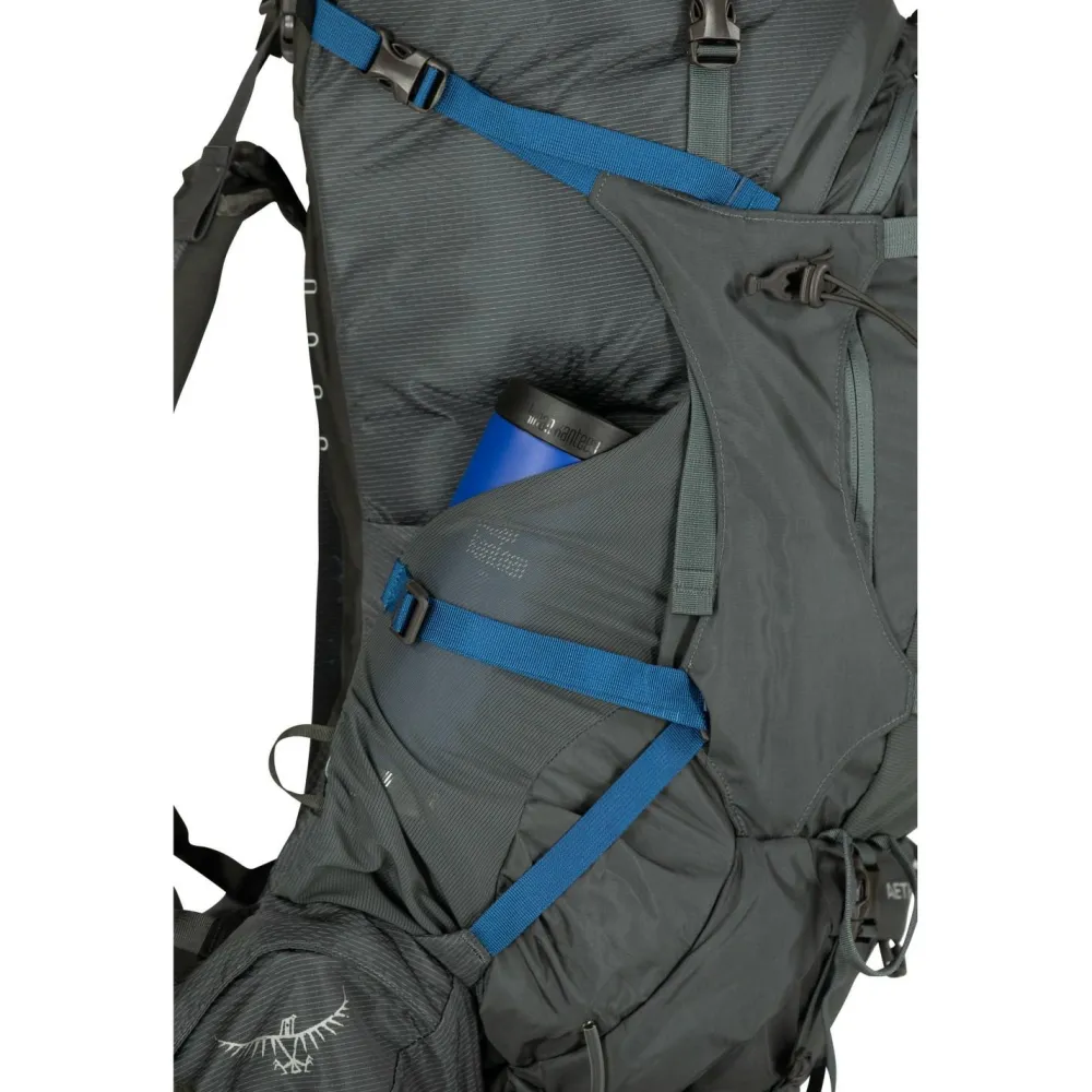 Wer auf der Toure einiges zu transportieren hat, der ist beim Aether Plus 70 von Osprey genau richtig. Doch dieser vielseitige Trekkingrucksack ist nicht nur groß, er bietet auch einen tollen Komfort und zahlreiche Extras. Neben dem obligatorischen Hauptfach verfügt er über zahlreiche kleinere Taschen und Fächer, die eine gute Strukturierung des Inhalts zulassen. Besonders: Was zunächst nur als geräumiges Frontfach erscheint, entpuppt sich beim näheren Hinsehen als abnehmbarer Daypack.Zahlreiche Einstellmöglichkeiten sorgen darüber hinaus für einen guten Sitz. Sehr praktisch ist dabei die einstellbare Rückenplatte, die eine optimale Anpassung an die persönliche Rückenlänge ermöglicht. Schulter-, Brust- und Hüftgurt lassen sich bei diesem Modell selbstverständlich ebenfalls mit nur wenigen Handgriffen einstellen. Durch die angenehme Polsterung verhindern sie selbst in Verbindung mit größeren Lasten die Bildung unangenehmer Druckstellen. Lüftungskanäle in der Rückenplatte ermögliche zusätzlich einen optimierten Luftaustausch.