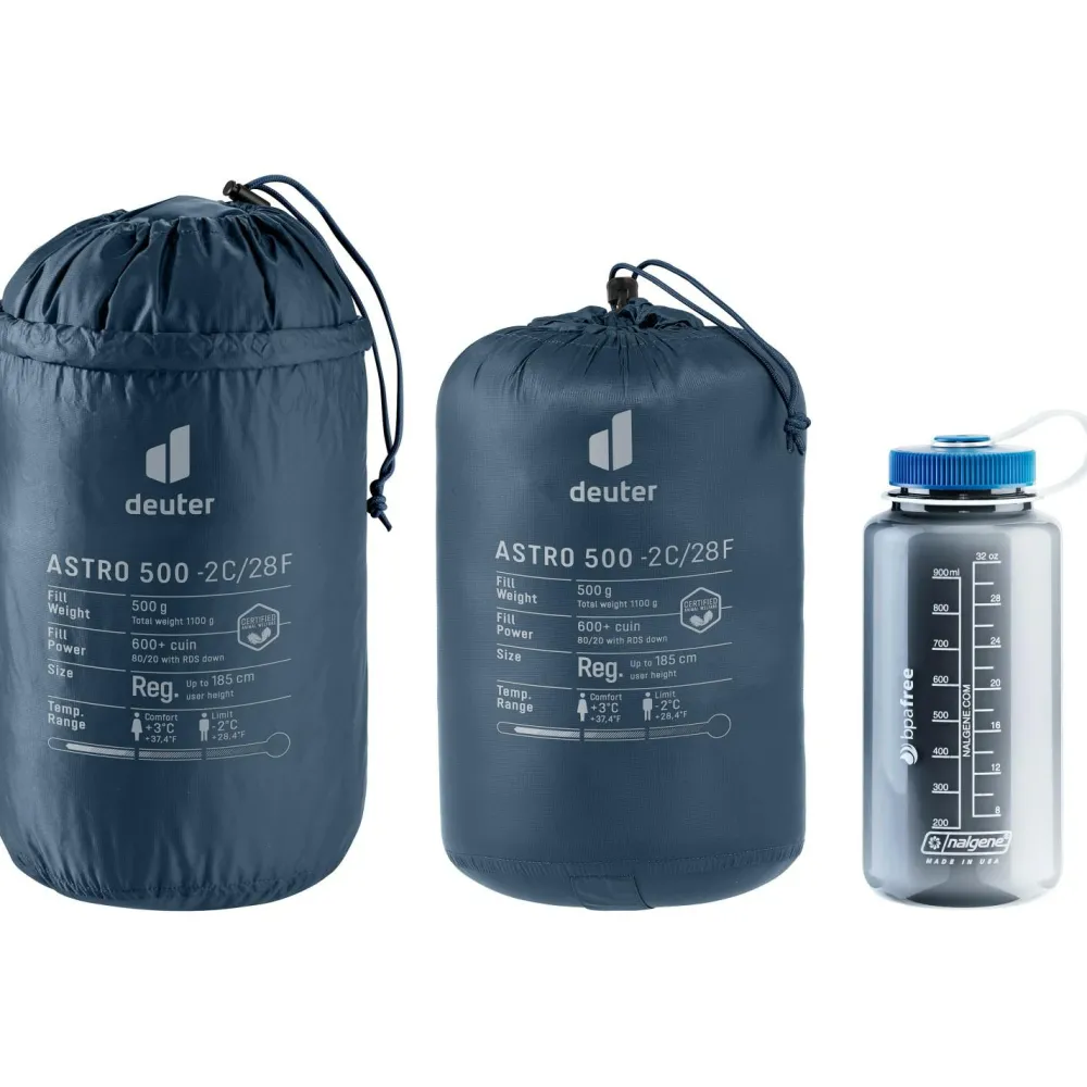 Der Astro 500 von Deuter ist der perfekte Daunenschlafsack für aktive Outdoorer und Bergsportler, die ihr Gepäck mit einem warmen und dennoch leichten Schlafsack kompakt halten wollen. Seine hochwertige Daunenfüllung bietet eine hohe Fillpower und sorgt dank der effizienten Verteilung in einer Trapez-Kammerkonstruktion für eine zuverlässige 360°-Isolation ohne Kältebrücken. Hinzu kommt der robuste und komfortable Bezugsstoff, der mit einer PFAS-freien Imprägnierung gegen Wasser und Schmutz ausgestattet ist.