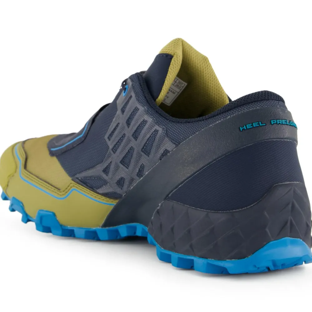 Für ein reibungsloses Laufgefühl sorgt die Feline SL Zwischensohle. Sie leitet die Energie zurück, damit der Fuß nicht vorzeitig ermüdet und dämpft den Lauf gleichzeitig optimal ab. Die Kombination aus Feline Sl und Pomoca bei der Laufsohle liefert einen exzellenten Grip auf jedem Untergrund und sichere Stabilität für den Läufer. Zusätzliche Verstärkungen rund um die Ferse erhöhen den Halt. Zusammen mit der Ortholite Innensohle hat der Läufer einen tollen Laufkomfort. Der Schuh ist mit einem praktischen Schnellschnürsystem ausgestattet, das intelligent versteckt ist. Das erhöht den Wetterschutz nochmal. Der Feline SL hält Läufer trocken und unterstützt den Fuß!