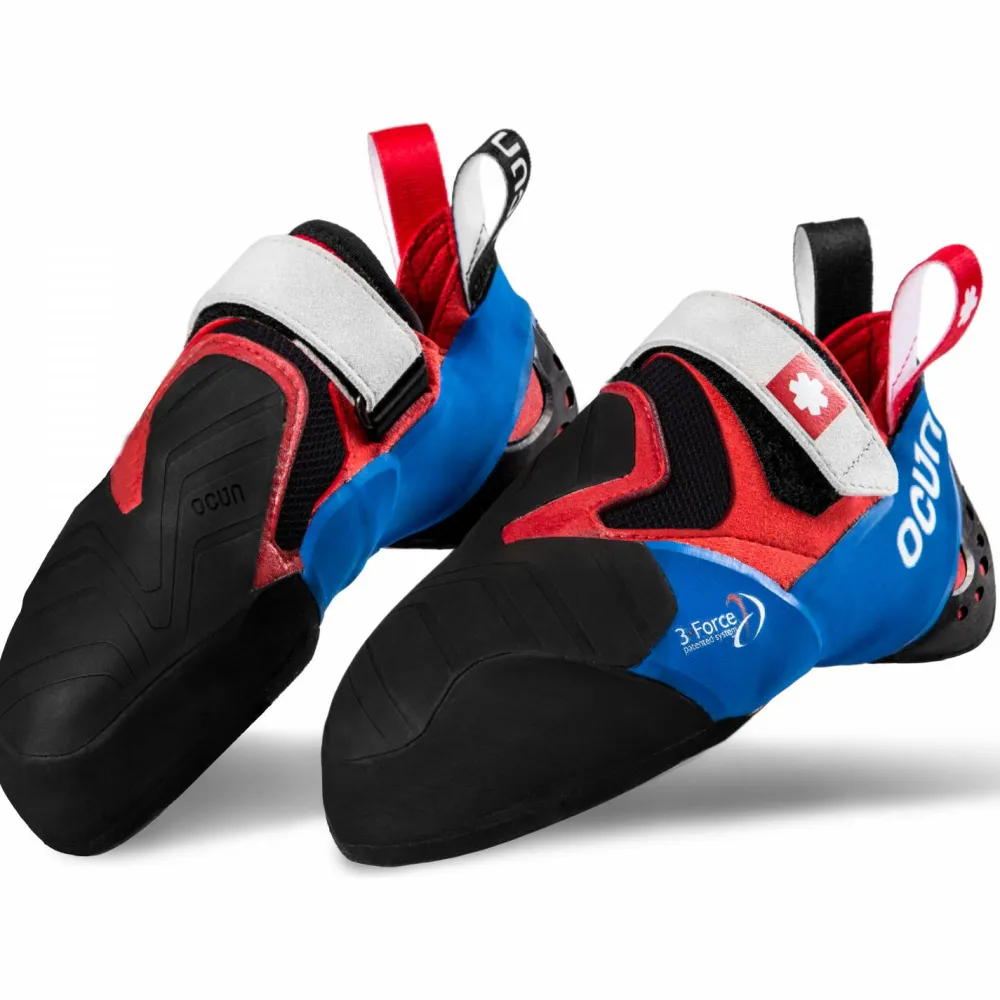 Wenns um maximale Performance beim Bouldern geht, dann müssen die Fury von Ocun her. Diese Kletterschuhe gehören dem High-End Segment an und bringen alles mit, was es zum anspruchsvollen Bouldern braucht. Auf den ersten Blick fällt auf: große Bereiche des Obermaterials sind gummiert. Dies ermöglicht nicht nur das präzise Setzen und halten von Toehooks, sondern schützt auch die Schuhe bei harten Bedingungen zuverlässig. Zusätzlich wird durch die Gummierung auch eine optimierte Torsionssteifigkeit erreicht, was wiederum eine verbesserte Stabilität erzeugt.