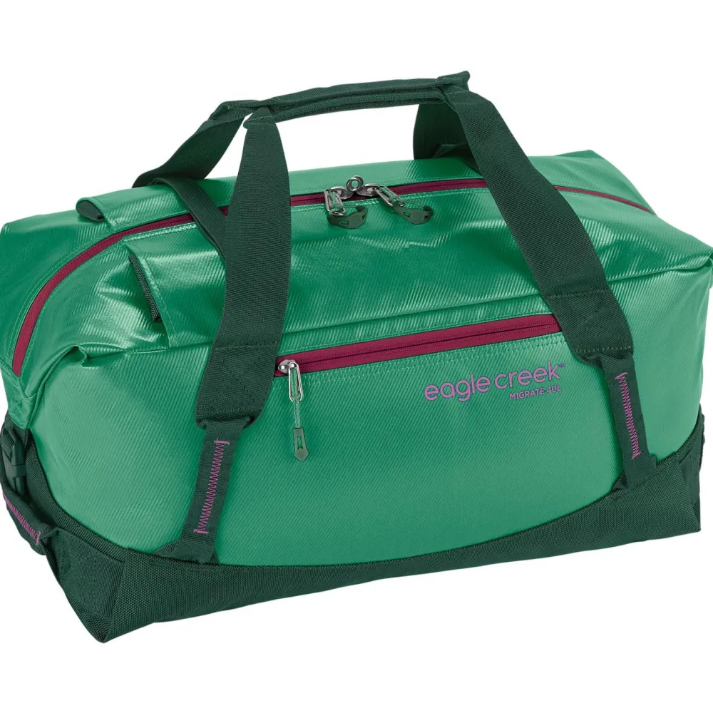 Die Migrate Duffel 40 L von eagle creek, ist eine robuste und gut durchdachte Reisetasche. Die unterschiedlichen Tragegriffe, dienen gleichzeitig zur Befestigung für zusätzliches Gepäck. Das Hauptfach ist durch einen großen Reisverschluss zugänglich, welcher abschließbar ist und durch eine große Schlaufe auch mit Handschuhen bedienbar ist. Zusätzlicher Stauraum kann man durch die Lösbaren Steckschließen gewinnen. Durch spezielle Techniken ist die Tasche wasserbeständig, abriebfest und Staubresistent. Mit der Migrate Duffel 40 L hast Du eine zuverlässige Reisetasche mit „No matter what warranty“.