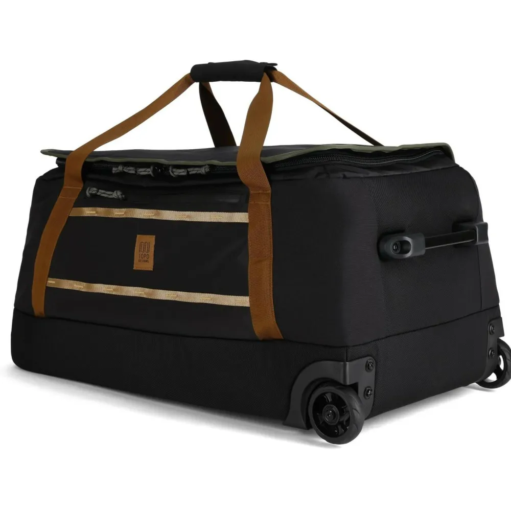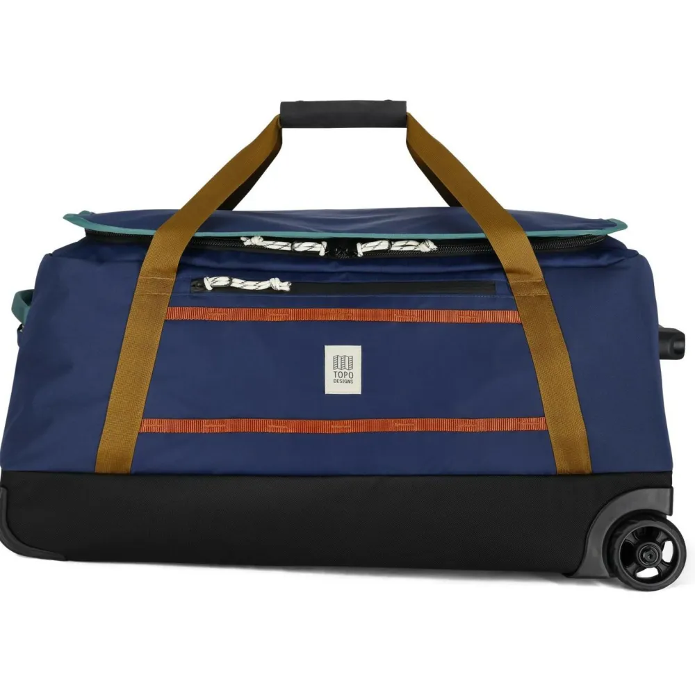 Die Mountain Duffel Roller 90 von Topo Designs ist Dein perfekter Begleiter für Reisen mit viel Gepäck. Mit einem großzügigen Volumen von 90 Litern bietet sie ausreichend Platz für Kleidung, Schuhe und mehr. Die cleveren Fächer wie zwei Reißverschluss-Innenfächer, eine Daisy Chain sowie eine Reißverschluss-Fronttasche sorgen dafür, dass Du alles ordentlich verstauen kannst. Ein Schlüssel-Clip und ein Wertsachenfach bieten zusätzliche Sicherheit für Deine wichtigsten Gegenstände.
