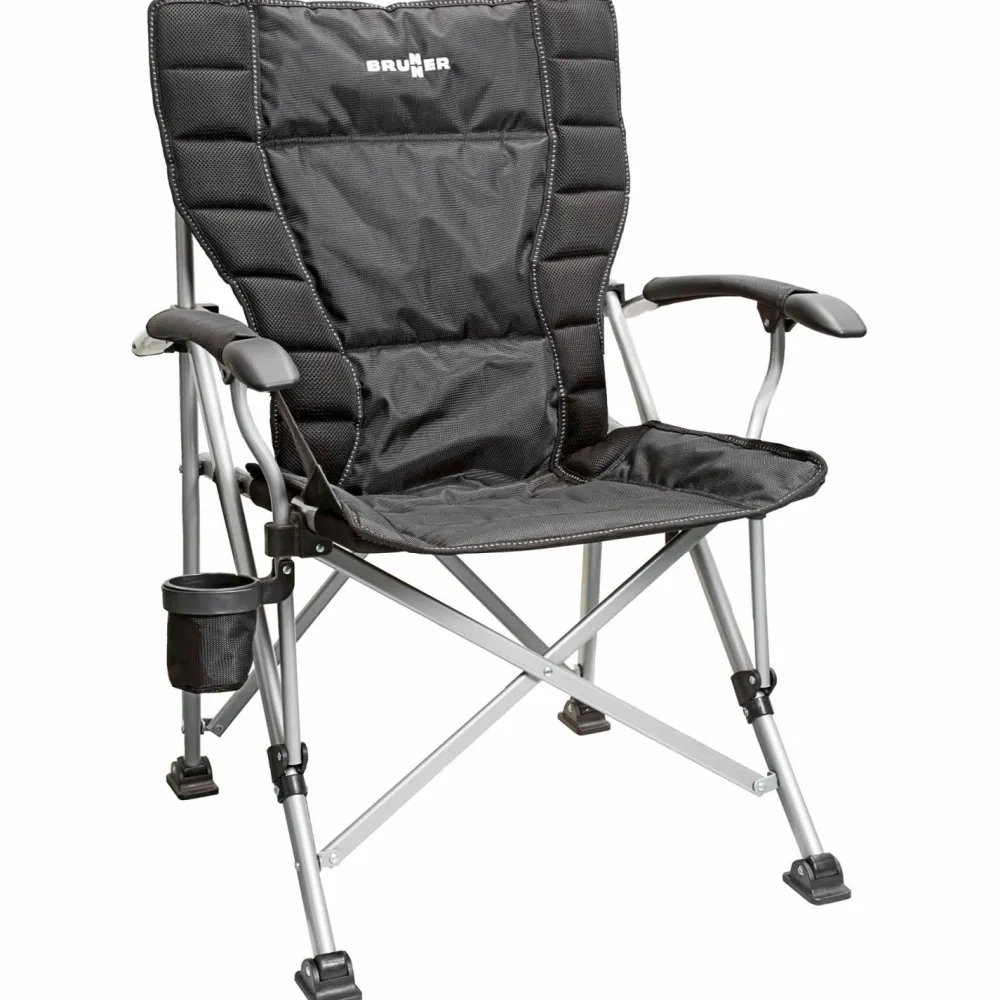 Der Campingstuhl Raptor NG 2.0 von Brunner punktet mit Komfort! Er kommt mit einem besonders weich geppolsterten Bezugsstoff daher. Auch die Armlehnen sind komfortabel konstruiert. Er lässt sich klein zusammenklappen und im Packsack sicher transportieren. Ideal für einen Campingtrip!