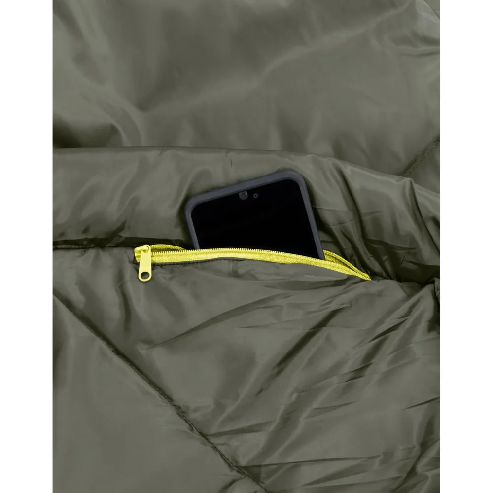 Vaude stattet den Sioux 800 II SYN mit Wärmekragen und Konturkapuze. Der seitliche Reißverschluss reicht komplett bis zum Fußsack und lässt sich einfach und bequem öffnen. Zusätzlich ergänzt eine praktische Innentasche für wichtige Accessoires den Kunstfaserschlafsack.