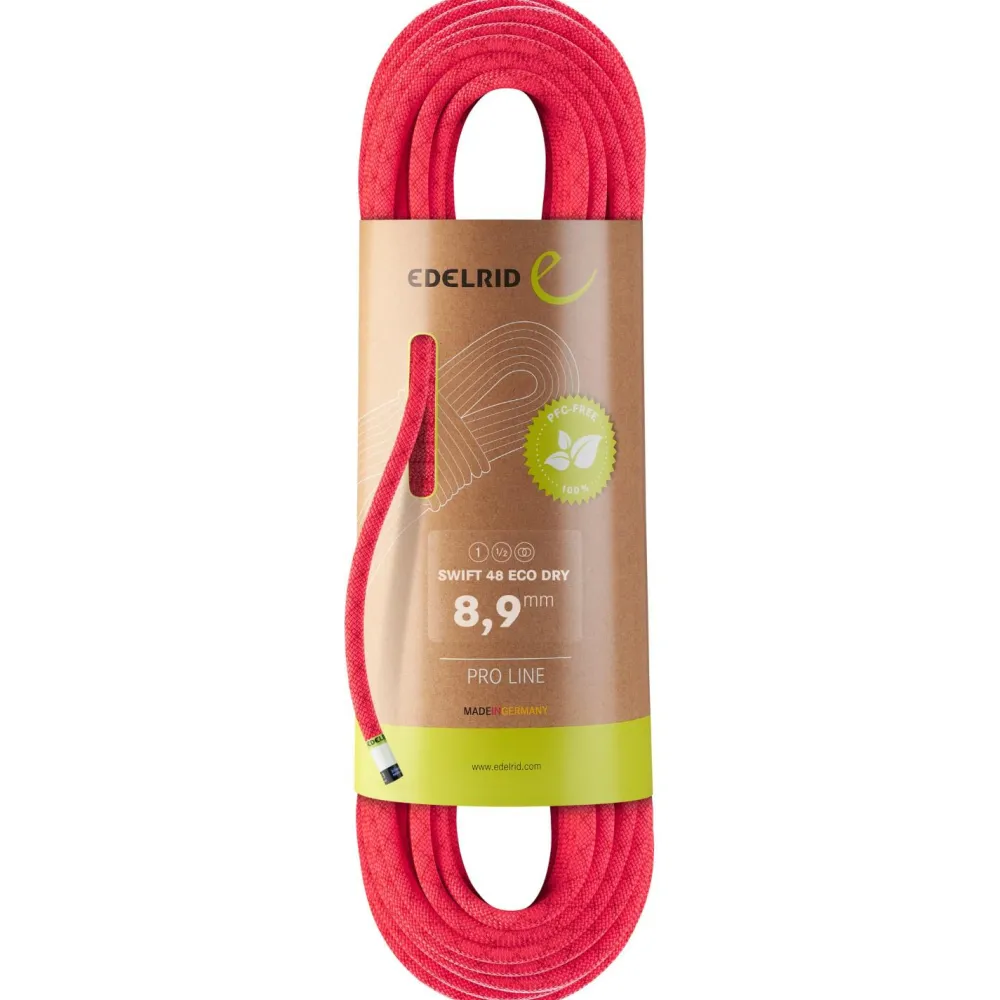 Wenn du ein vielseitiges Kletterseil mit höchsten Sicherheitsstandards, geringem Gewicht und nachhaltigen Materialien suchst, ist das Swift 48 Eco Dry 8,9 Einfachseil von Edelrid genau der richtige Begleiter für alle kommenden vertikalen Abenteuer. Es ist enorm vielseitig, da es als Einfach-, Halb- und Zwillingsseil zertifiziert ist. Mit seinen 8,9 mm Durchmesser ist es eines der dünnsten Einfachseile am Markt und zeichnet sich durch eine besonders feine Mantelstruktur und gleichzeitig eine hohe Abriebfestigkeit aus.