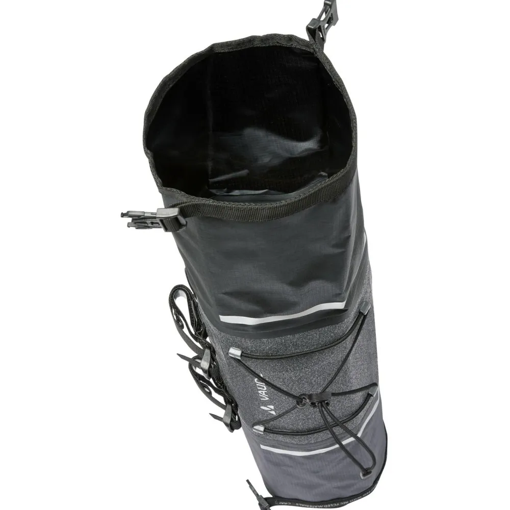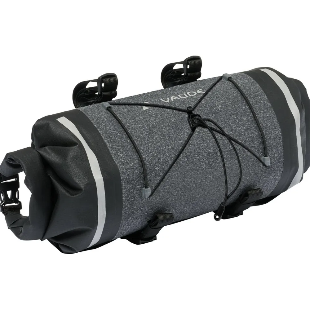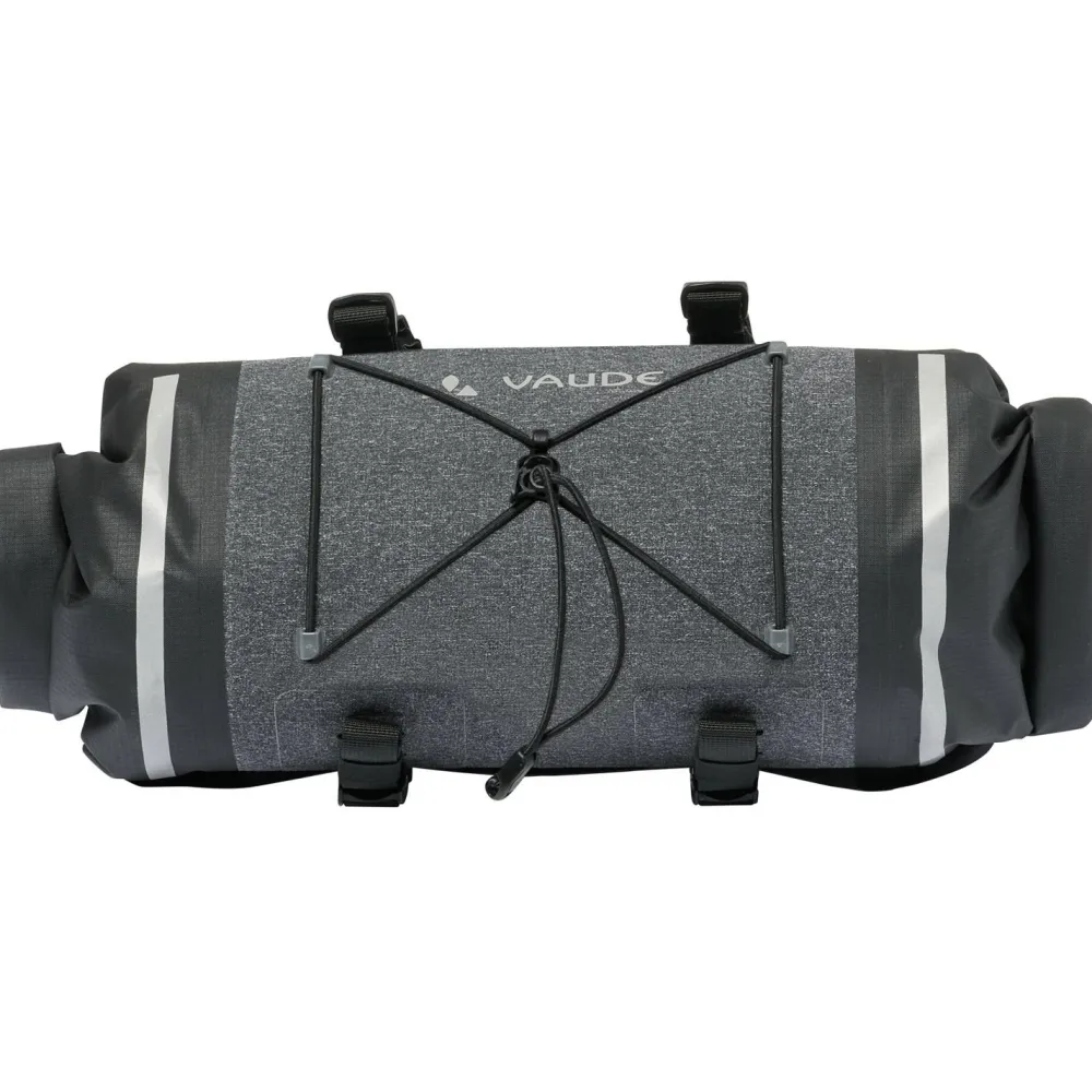 Die Trailfront Compact von Vaude ist eine robuste und wasserdichte Lenkertasche für das Bikepacking. Die Halterung wird mittels Klettbändern sicher und ruckelfrei am Lenker befestigt. An ihr ist ein oben ein praktischer Gummizug zum Verstauen der Windjacke oder Ähnlichem vorhanden.