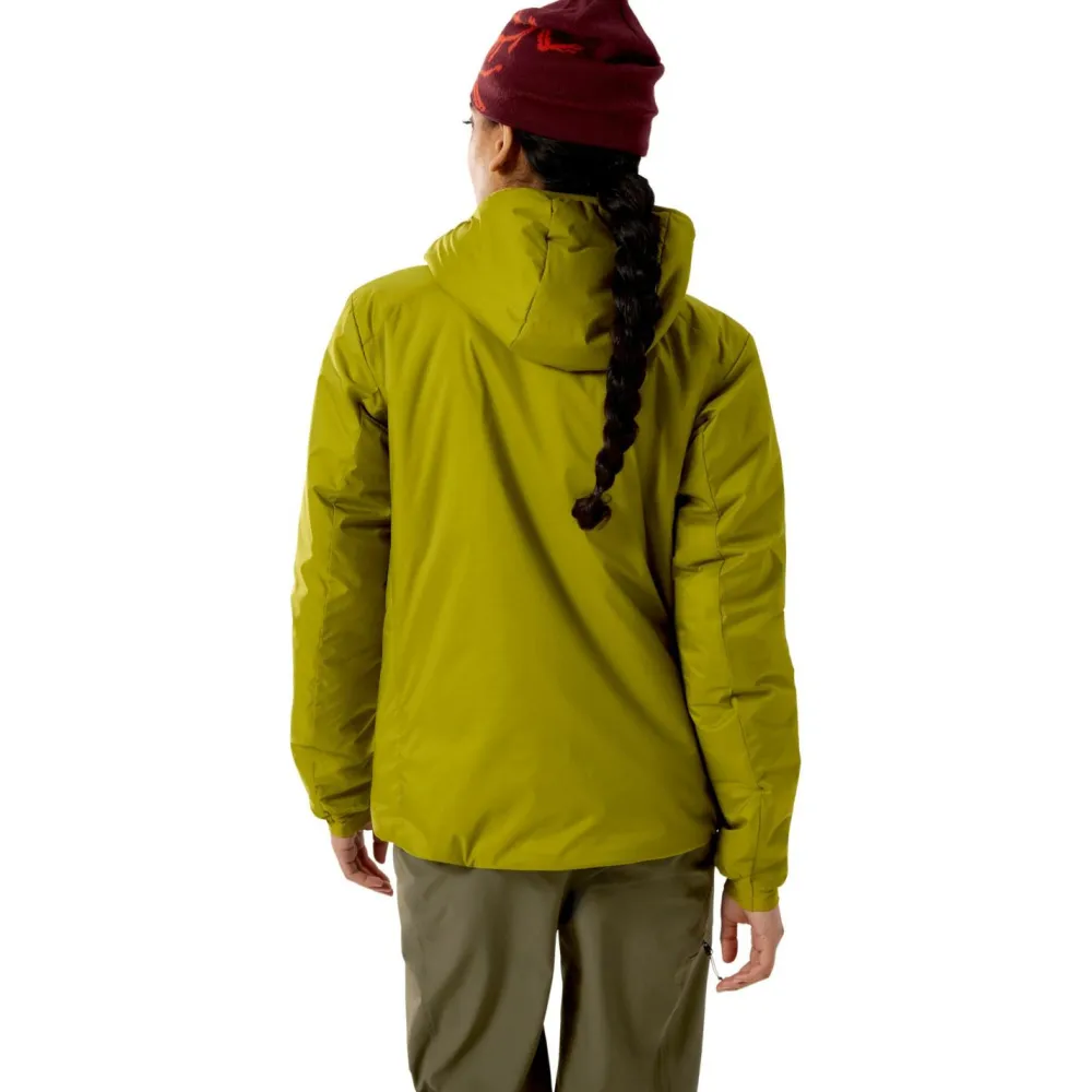 Du kennst das: Das Wetter schlägt um, der Wind pfeift – aber mit der Women’s Atom SV Hoody von Arc’teryx bleibst Du entspannt. Dank DWR-Imprägnierung perlt leichter Regen einfach ab, während Frontreißverschluss mit Kinnschutz und Untertritt Dir zusätzlichen Schutz vor Zugluft bieten. Die Kapuze lässt sich individuell einstellen und passt sogar über den Helm; elastische Bündchen sowie ein verstellbarer Saum sorgen dafür, dass nichts verrutscht.