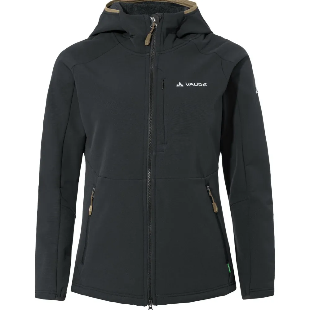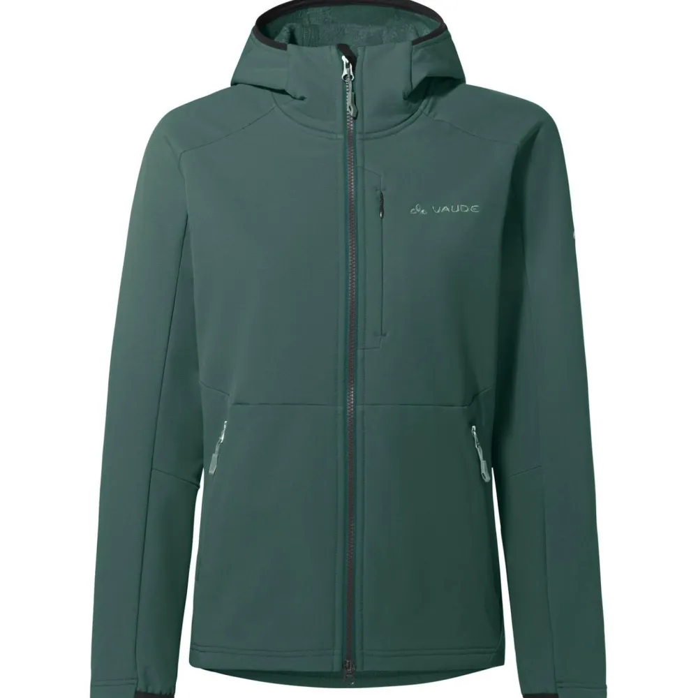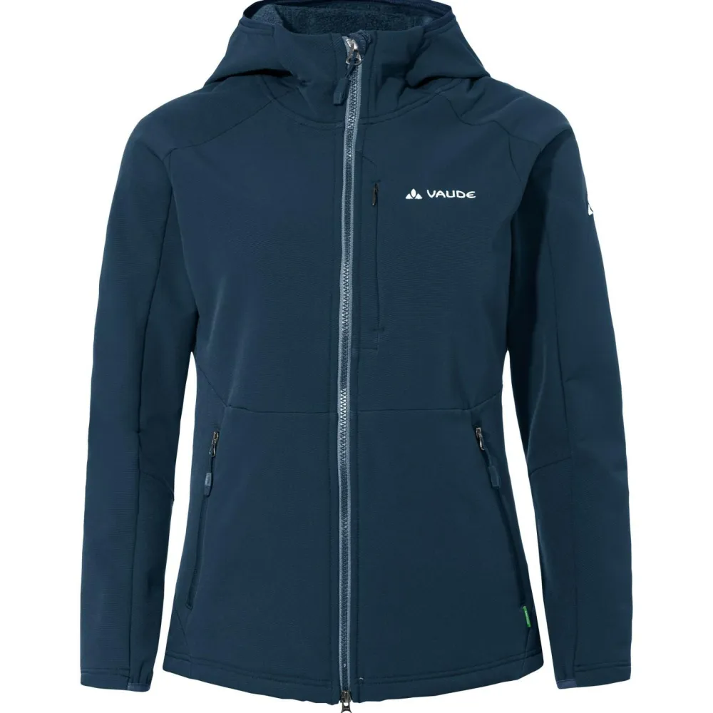 Für die Übergangszeit ist die Softshelljacke Women’s Elope Stormfleece Hoody von Vaude der ideale Partner! Sie kommt mit einem windabweisenden Material daher, die Dich zuverlässig vor Wind und Wetter schützt. Zudem ist die Jacke weich und warm. An den ungemütlichen Tagen liefert die Kapuze ein Plus an Schutz. Weitenregulierbare Bündchen optimieren die Passform. Ideal für Wandertouren!