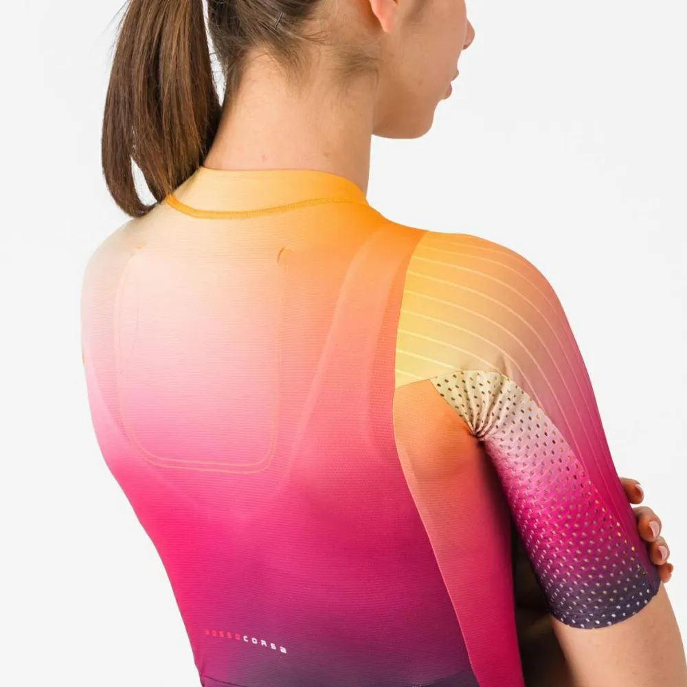 Mit dem Castelli Women’s Free Sanremo Tri Suit S/S bist Du bestens gerüstet für Dein nächstes Rennen oder Training. Die zwei Rückentaschen bieten ausreichend Stauraum für wichtige Utensilien wie Energieriegel oder Gels, sodass Du immer alles griffbereit hast. Eine clevere Nackentasche für Eis sorgt zudem für eine willkommene Erfrischung bei hohen Temperaturen. Diese durchdachten Details machen den Anzug zu einem unverzichtbaren Begleiter für Triathletinnen, die Wert auf Funktionalität legen.