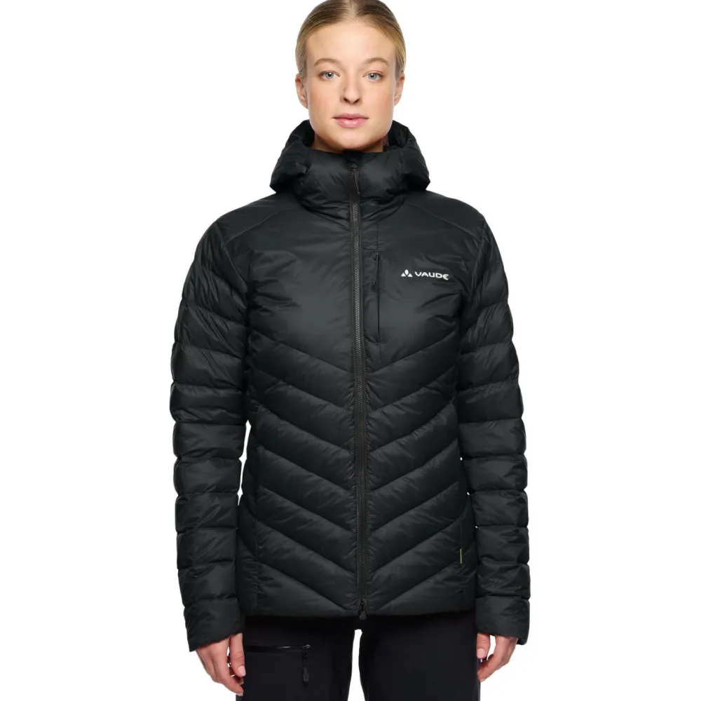Zuverlässige Partnerin für den alpinen Einsatz: die Women’s Monviso Down Hooded Jacket von Vaude! Diese hochklassige Daunenjacke punktet mit einer wasserabweisenden Daunenfüllung, die den Körper mit einer sagenhaften Fillpower von 800 cuin jederzeit warm hält. Das sie umgebende Nylongewebe ist nicht nur zuverlässig wetterfest, sondern dank Herstellung aus innovativem Altreifen-Recycling auch nachhaltig.