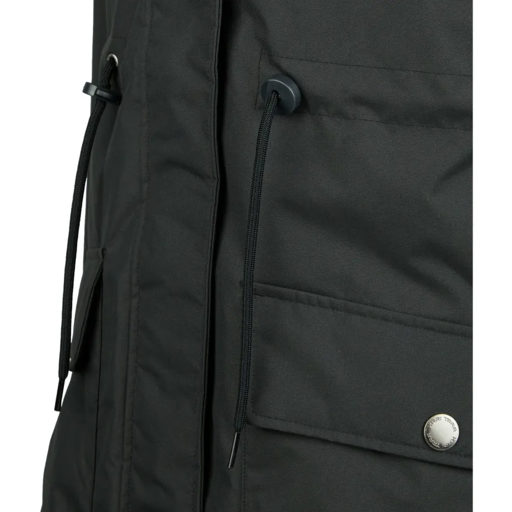 Der sehr hohe Kragen geht über das Kinn direkt in die Kapuze über, wodurch kriechende Kälte kaum eine Chance hat. Die winddichte Eigenschaft des Materials wird durch einen breiten mit Knöpfen fixierbaren Saum noch verstärkt, wodurch schlechtes Wetter draußen bleibt. Neben Handwärmertaschen auf Hüfthöhe, verfügt der Mantel über eine Innentasche und zwei Brusttaschen, in denen sich Wichtiges sicher verstauen lässt. Der Women’s Tesdal Parka von Kari Traa ist damit immer eine sichere Wahl!