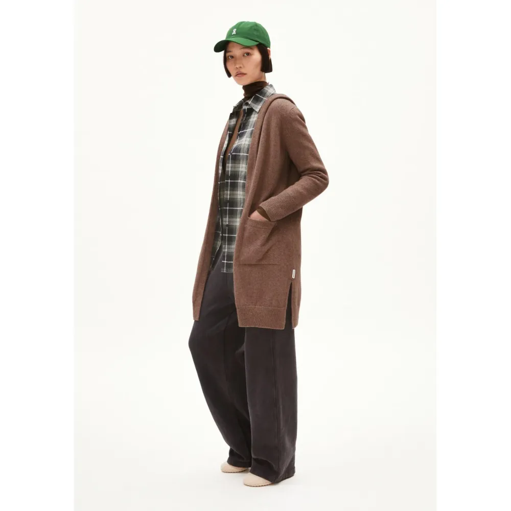 Der perfekte Begleiter für kühle Tage – die Women’s Warma von ARMEDANGELS. Die lang geschnittene Jacke sorgt dafür, dass du es an kalten Herbsttagen und frischen Frühjahrsabenden schön warm hast. Die praktische Kapuze garantiert dabei einen zusätzlichen Kuschelfaktor. Du kannst sie entweder als Jacke tragen oder für ungemütlicheres Wetter als Cardigan mit einer zusätzlichen Jacke kombinieren. So bist du das ganze Jahr über flexibel unterwegs. Neben dem kuscheligen, komfortablen Tragegefühl überzeugt sie auch optisch und garantiert ein trendsicheres Auftreten in verschiedensten Alltags – und Freizeitsituationen. Die Produktion aus nachhaltigen Materialien ist ein zusätzlicher Pluspunkt und machen die Women’s Warma zum Must-have für deinen Alltag.