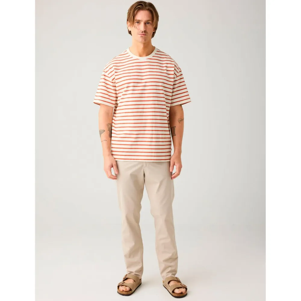 Das Organic Cotton Striped T‑Shirt von Knowledge Cotton Apparel bietet Dir ein angenehm leichtes Tragegefühl im Alltag, bei der Arbeit und in der Freizeit; dabei ist es aber durch die 300g/qm-Qualität schön robust. Der weiche Baumwollstoff ist sanft zur Haut, lässt Luft zirkulieren und sorgt so für hohen Tragekomfort. Dank der guten Feuchtigkeitsaufnahme bleibst Du auch bei Bewegung angenehm trocken. Durch den klassischen Stil ist das Shirt vielseitig kombinierbar: ob solo getragen oder unter einer Jacke, zur Jeans oder zur Short. Die strapazierfähige Qualität lässt das Organic Cotton Striped T‑Shirt zuverlässig durch viele Waschgänge gehen und schnell zu einem festen Bestandteil Deiner Garderobe werden.