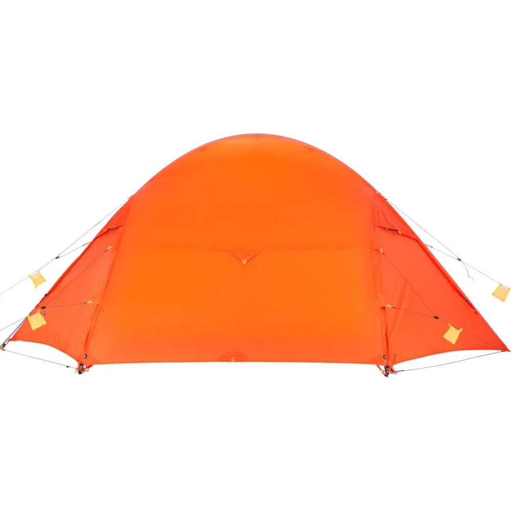 Die beiden Apsiden des Orion II Extreme bieten genügend geschützten Stauraum und gut zugängliche Eingangsbereiche. Die Stangenfüße sind für zwei verschiedene Stangensets konzipiert und die drei Dyneema-Abspannschnüre sind vormontiert. Dadurch ist der Aufbau noch schneller und flexibler möglich. Auch das bewährte DAC-Gestänge hat ein ideales Maß an Leichtigkeit und Robustheit und ist angenehm einfach im Handling.