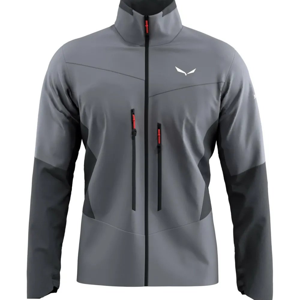 Die Ortles DST/SW Jacket Softshelljacke von Salewa liegt weich und bequem am Körper und bietet eine angenehme Luftzirkulation. Hierfür sorgen atmungsaktive Materialien und die Möglichkeit, mit zwei Unterarm-Reißverschlüssen manuell frische Luft ins Innere der Jacke zu befördern. Wind- und wasserabweisende Eigenschaften halten bei wechselhaftem Wetter die Elemente aus dem Inneren der Jacke fern, wodurch es hier trocken und gemütlich warm bleibt.